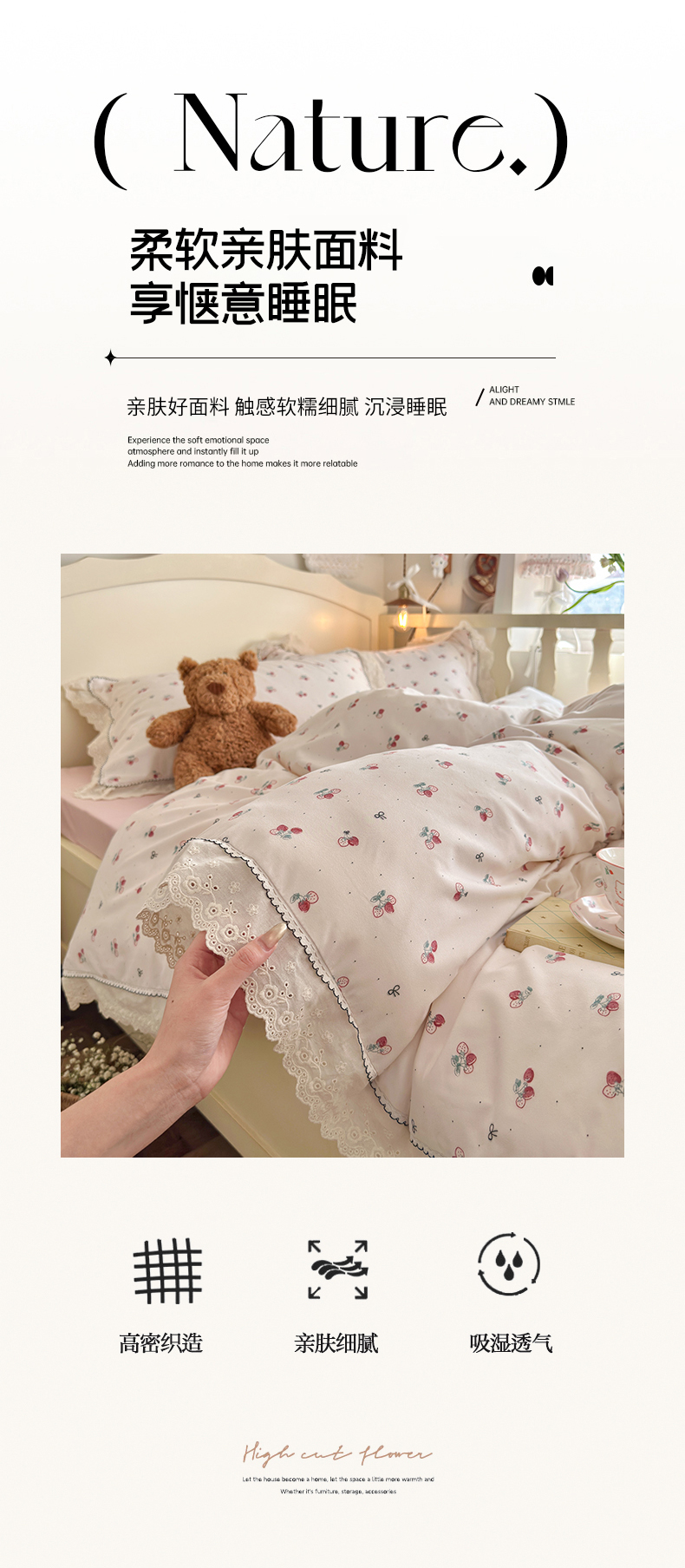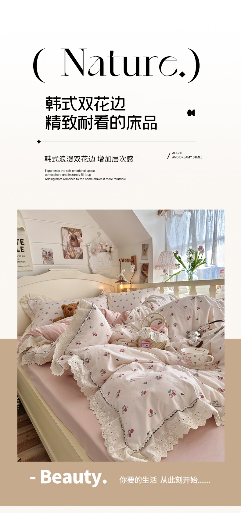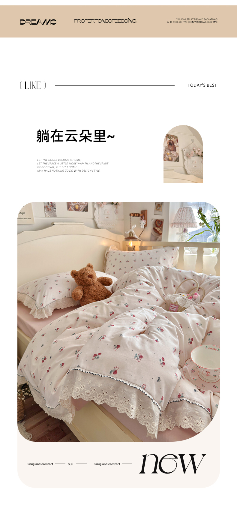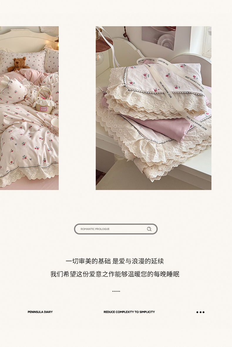 当前位置: 91家纺网 > 商品网购 > 床品套件 > 四件套 > 其它四件套 > 海岛哥哥 2026新款仿棉云柔纱韩版双花边四件套 花边-小草莓