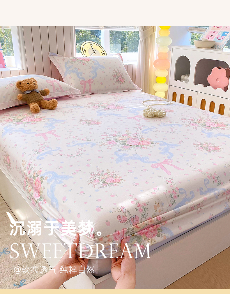 商品名称:金丝兔 2026新款纯棉印花单品床笠系列 花漫歌