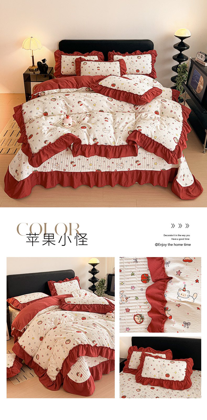 当前位置: 91家纺网 > 商品网购 > 床品套件 > 四件套 > 双层纱四件套 > 富米莱(原臻工厂) 2026新款敲可爱奶呼呼云感双层纱韩国大布袋韩版大花边床盖床裙四件套-超级治愈 摘星