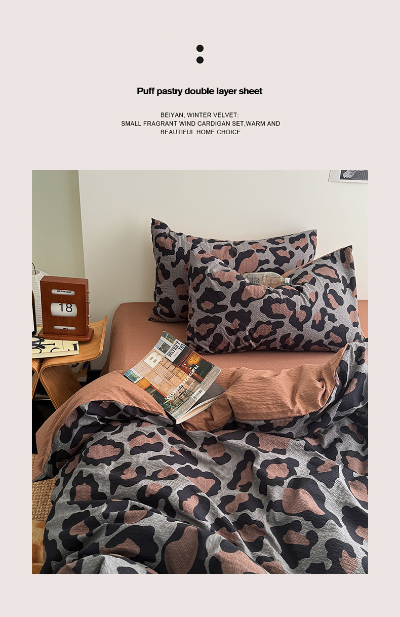 当前位置: 91家纺网 > 商品网购 > 床品套件 > 四件套 > 其它四件套 > 初念 2026春夏新款简约泡芙纱四件套 灰豹纹