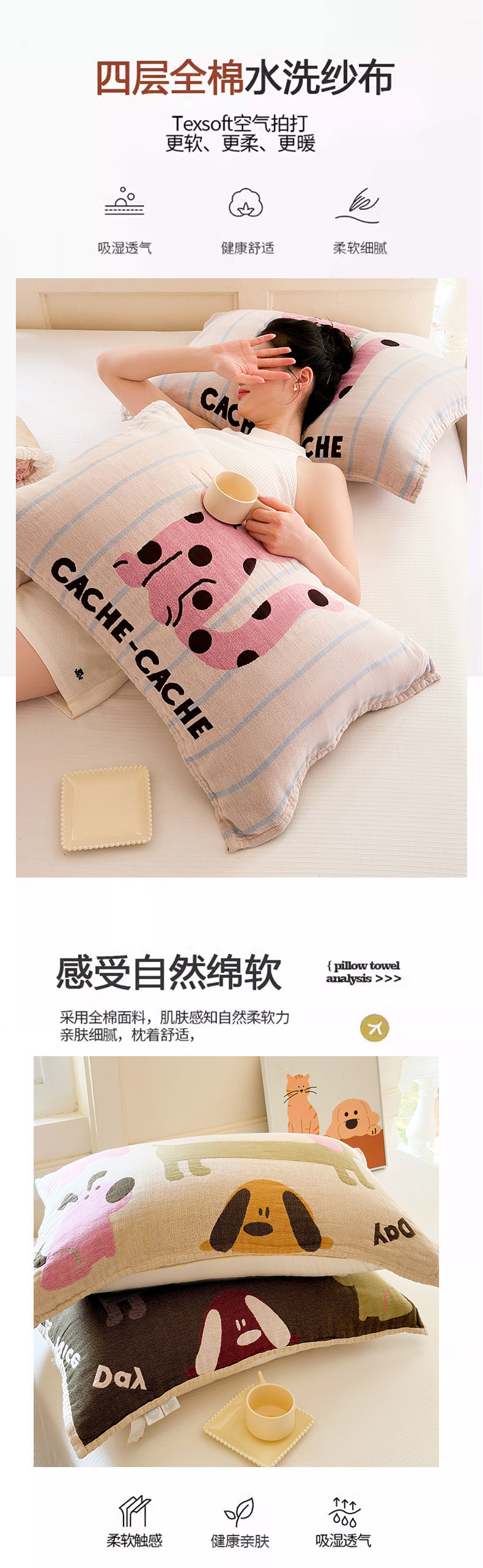 当前位置: 91家纺网 > 商品网购 > 床上用品 > 枕巾垫巾 > 朴尔家纺-毛巾被 2026新款全棉纯棉多柔AB版定位四层纱布枕巾 嬉皮狗