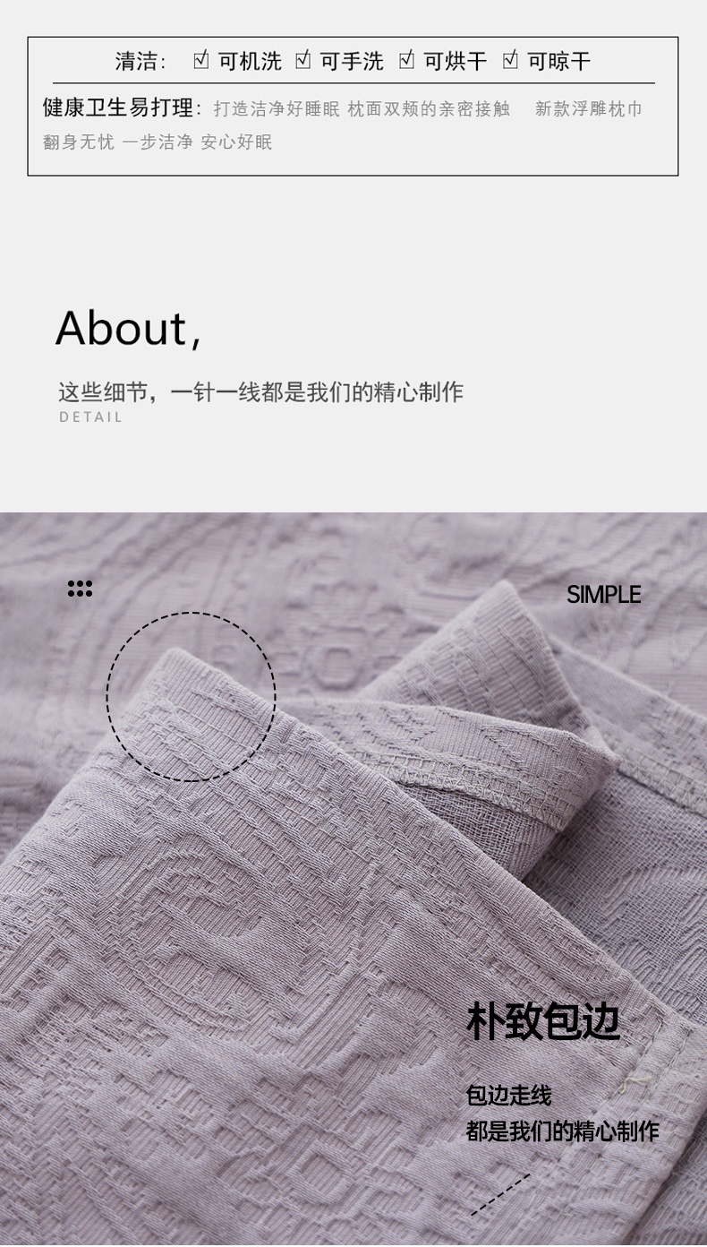 当前位置: 91家纺网 > 商品网购 > 床上用品 > 枕巾垫巾 > 朴尔家纺-毛巾被 2026新款浮雕凤尾花纯色全棉纯棉三层纱布枕巾 浮雕凤尾花-深灰