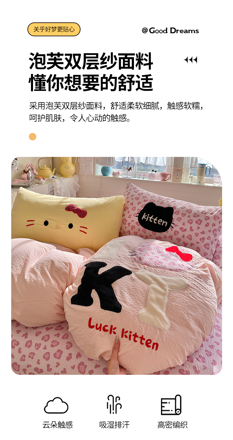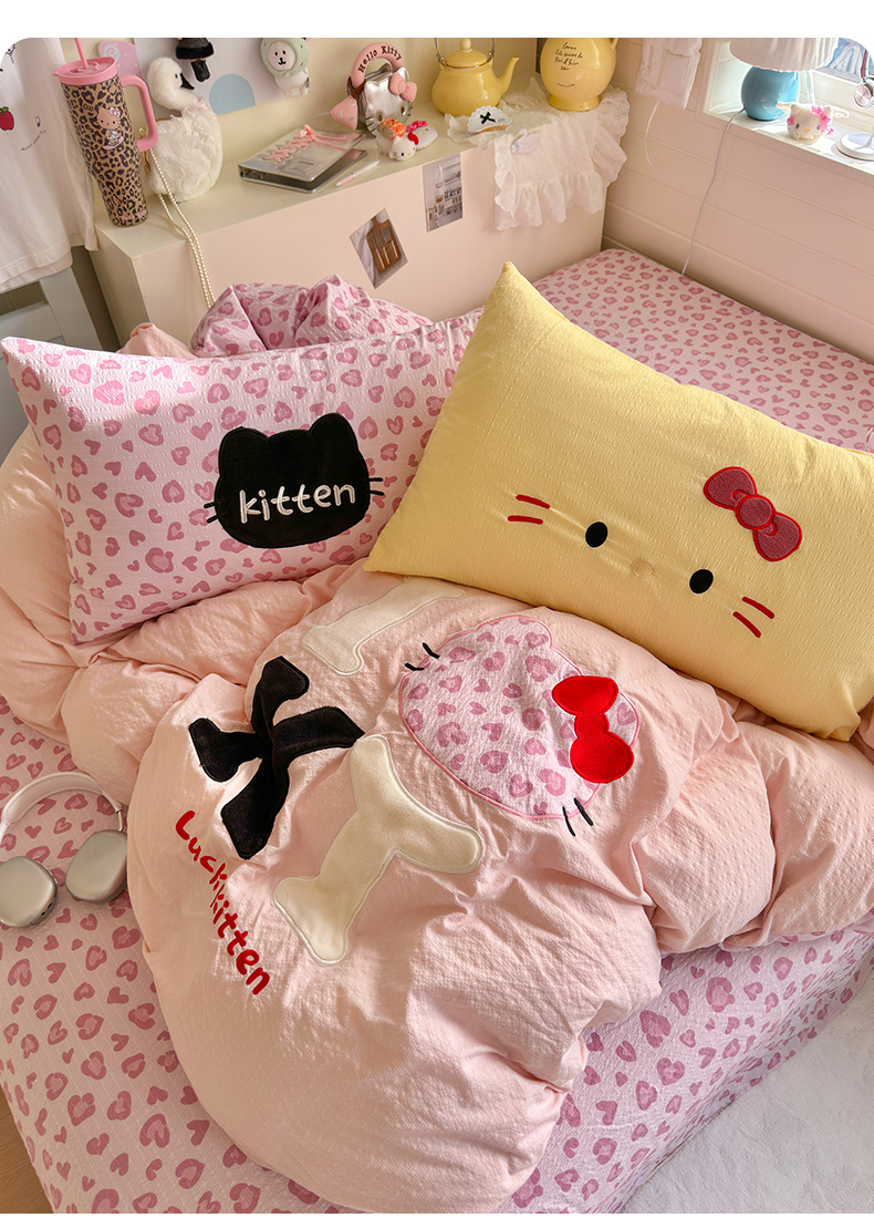 当前位置: 91家纺网 > 商品网购 > 床品套件 > 四件套 > 其它四件套 > 初念 2026春夏新款泡芙莎贴布绣豹豹猫猫四件套 豹豹猫猫--紫