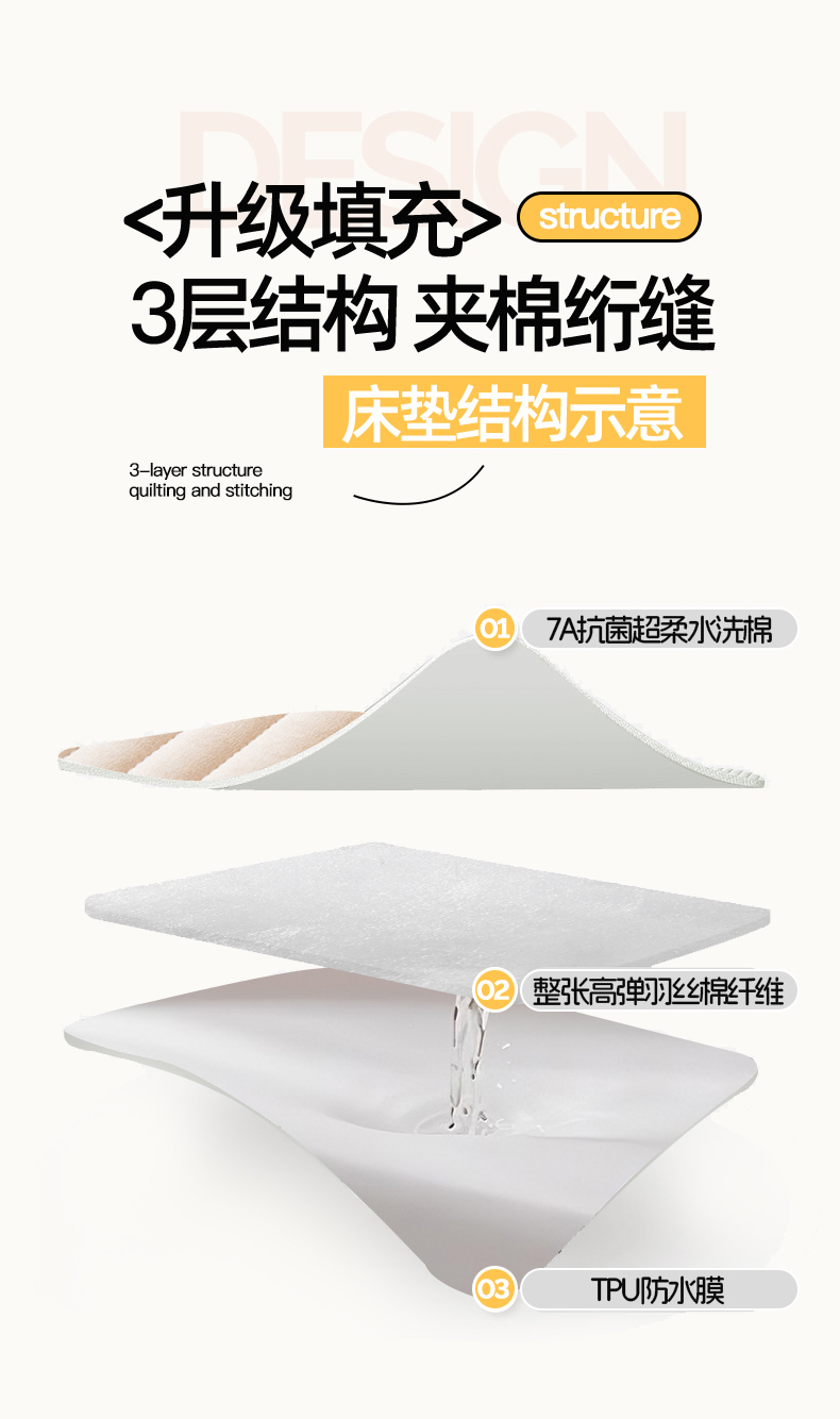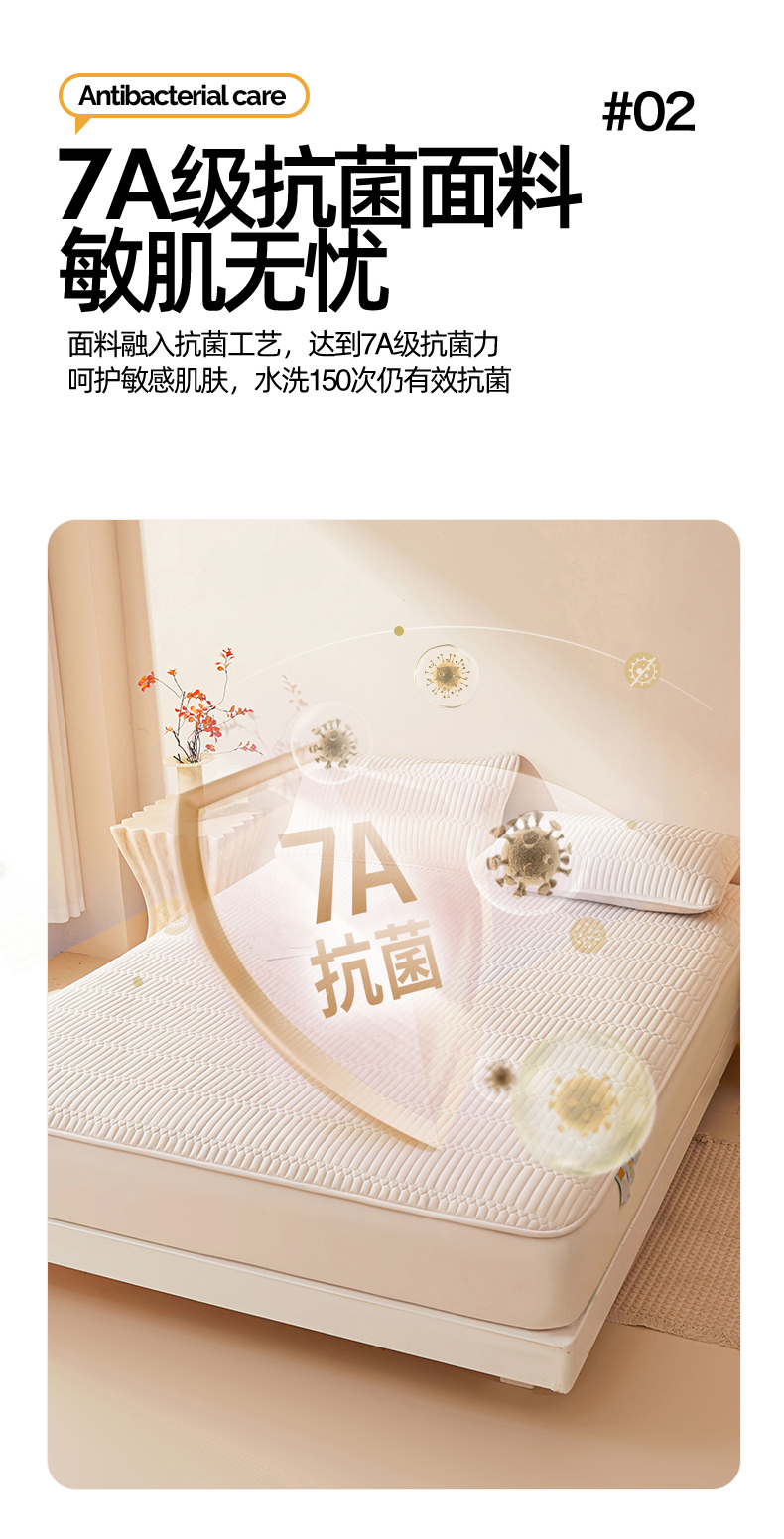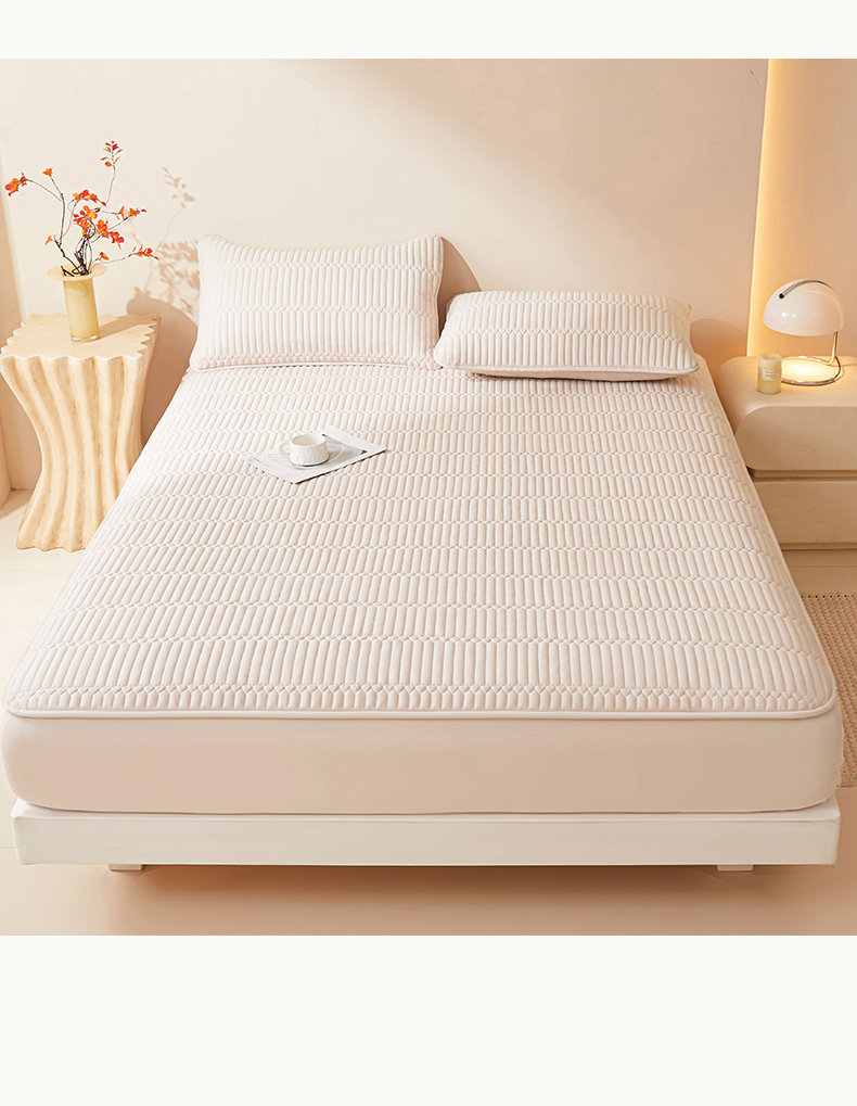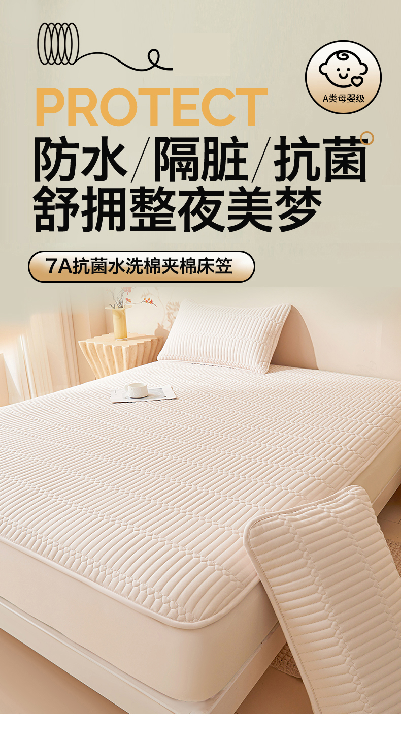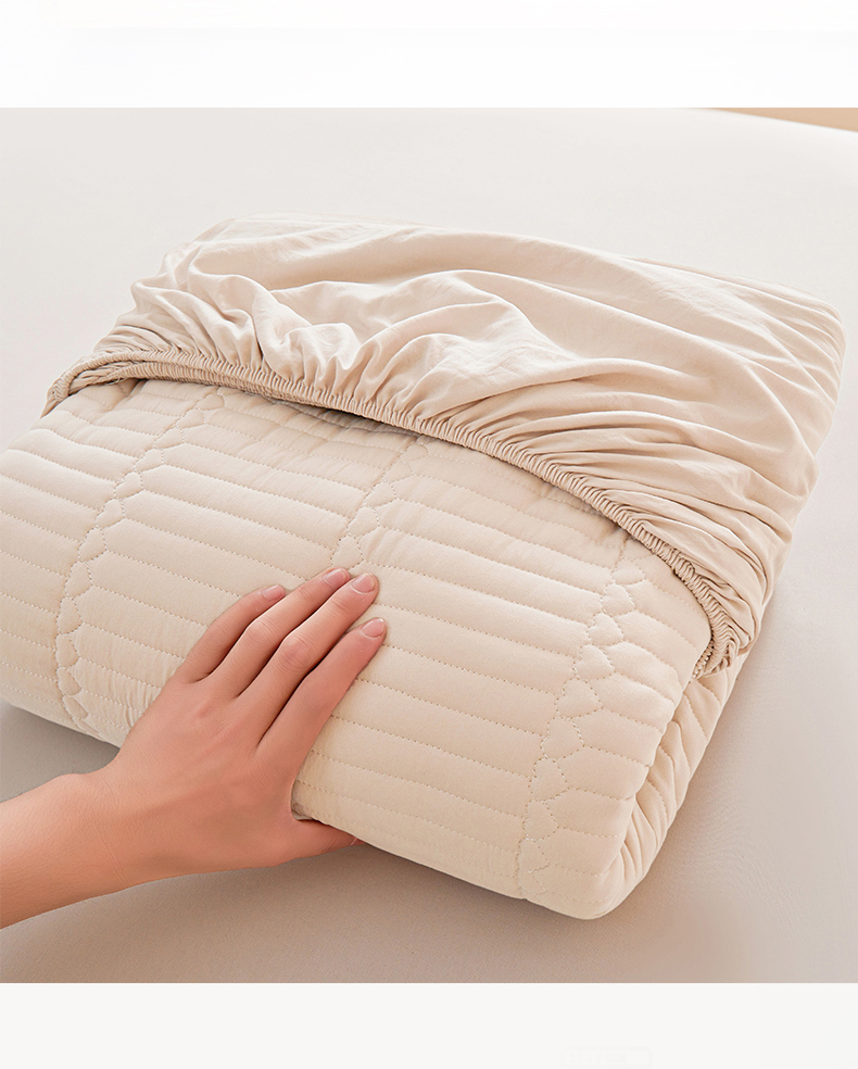 • 91家纺网 家纺一手货源 找家纺 女子家纺 2026春夏新款简爱A类夹棉防水床笠三件套水洗棉7A抗菌磨毛床单保护套 简爱-奶咖