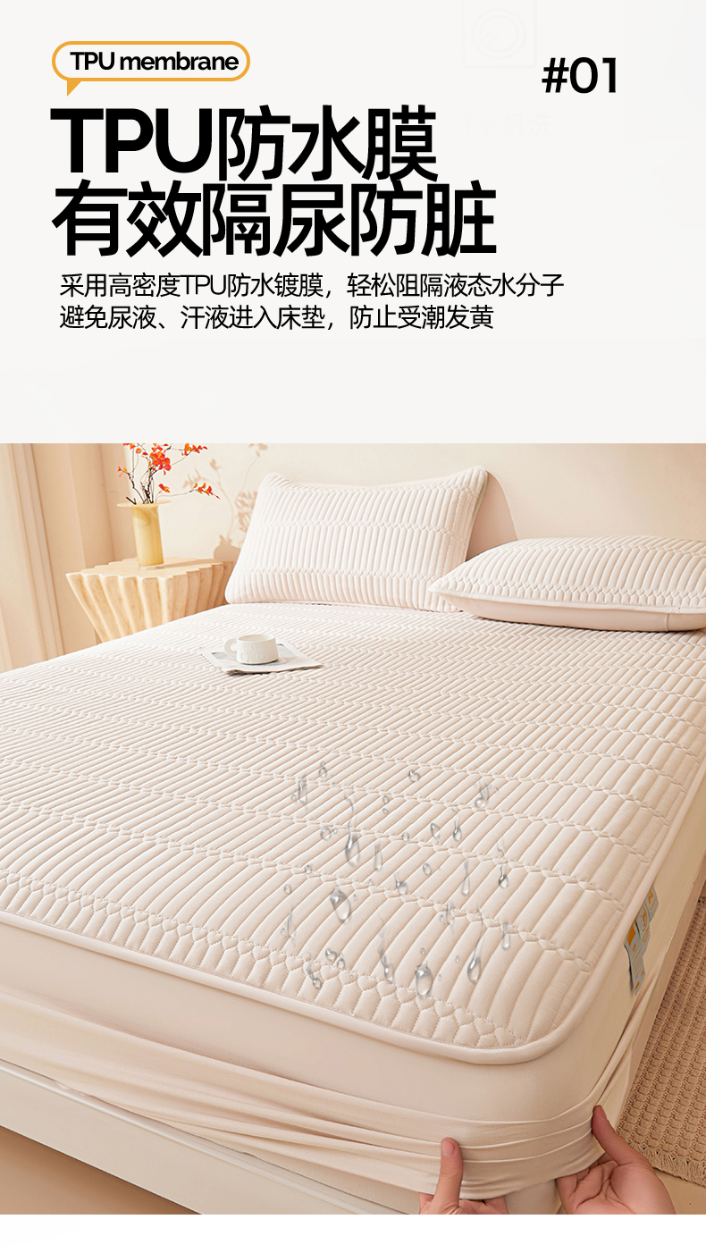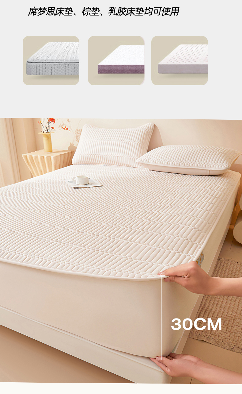 (总)女子家纺 2026春夏新款简爱A类夹棉防水床笠三件套水洗棉7A抗菌磨毛床单保护套,简爱-月光白,简爱-黛蓝,简爱-淡水蓝,简爱-密合粉,简爱-暮云灰,简爱-奶咖,简爱-清雅绿,简爱-深空灰