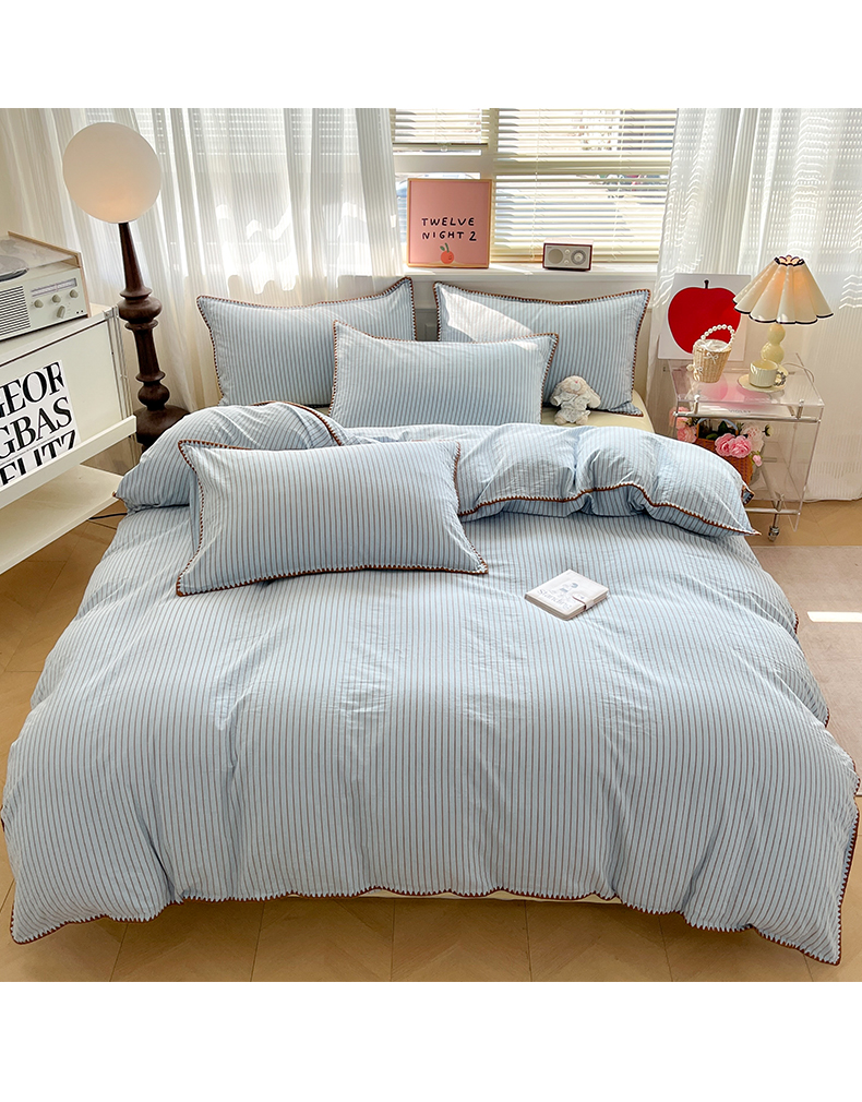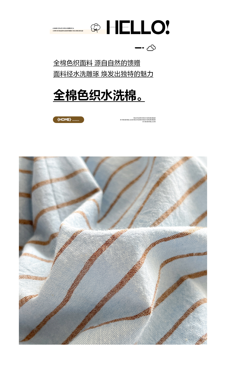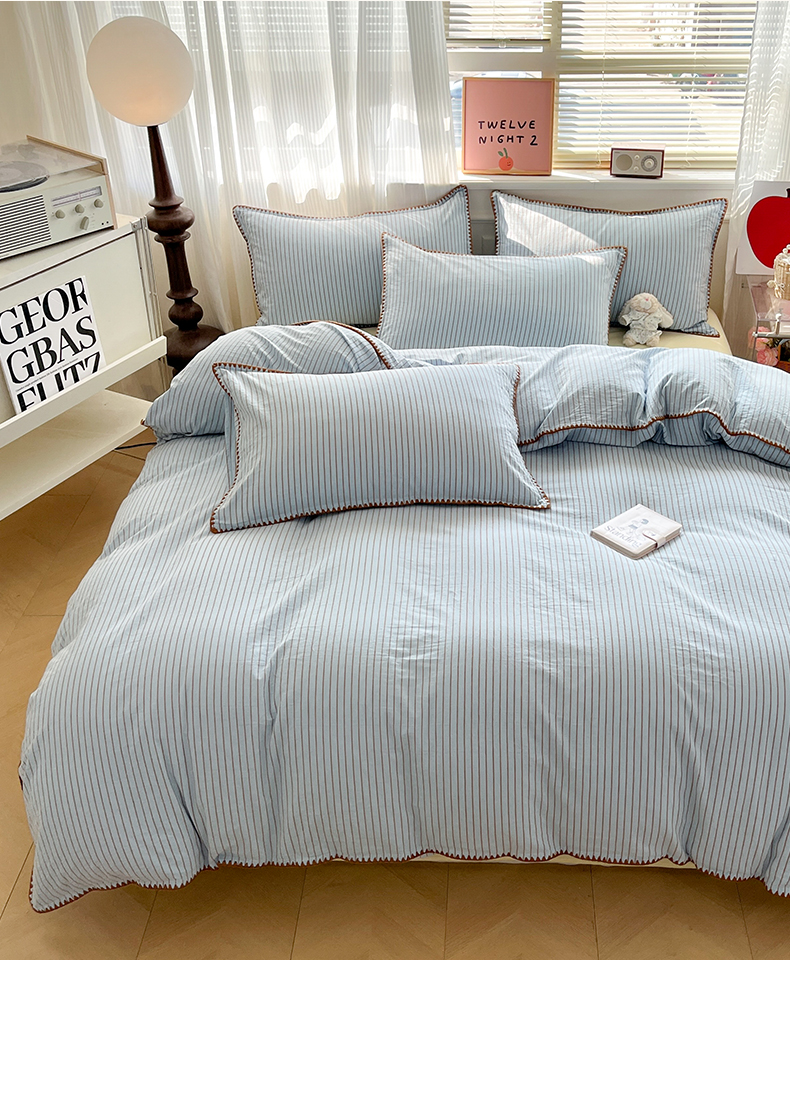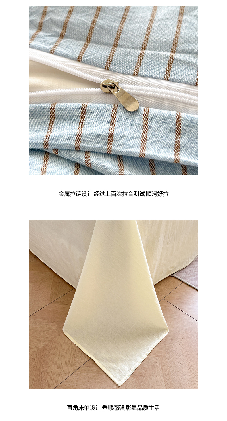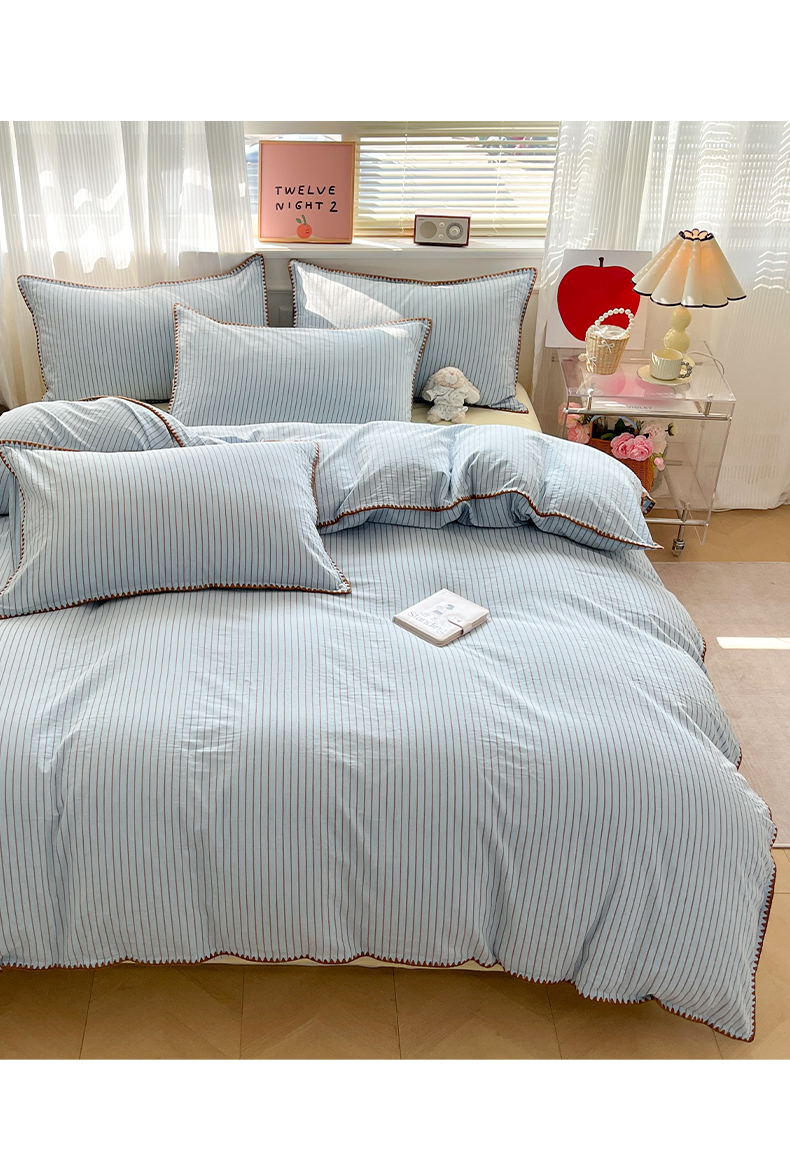 当前位置: 91家纺网 > 商品网购 > 床品套件 > 四件套 > 全棉普通四件套 > 如一 2026春夏新款色织全棉纯棉加密水洗棉条纹三角针四件套 晴空蓝