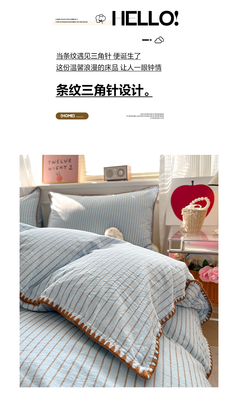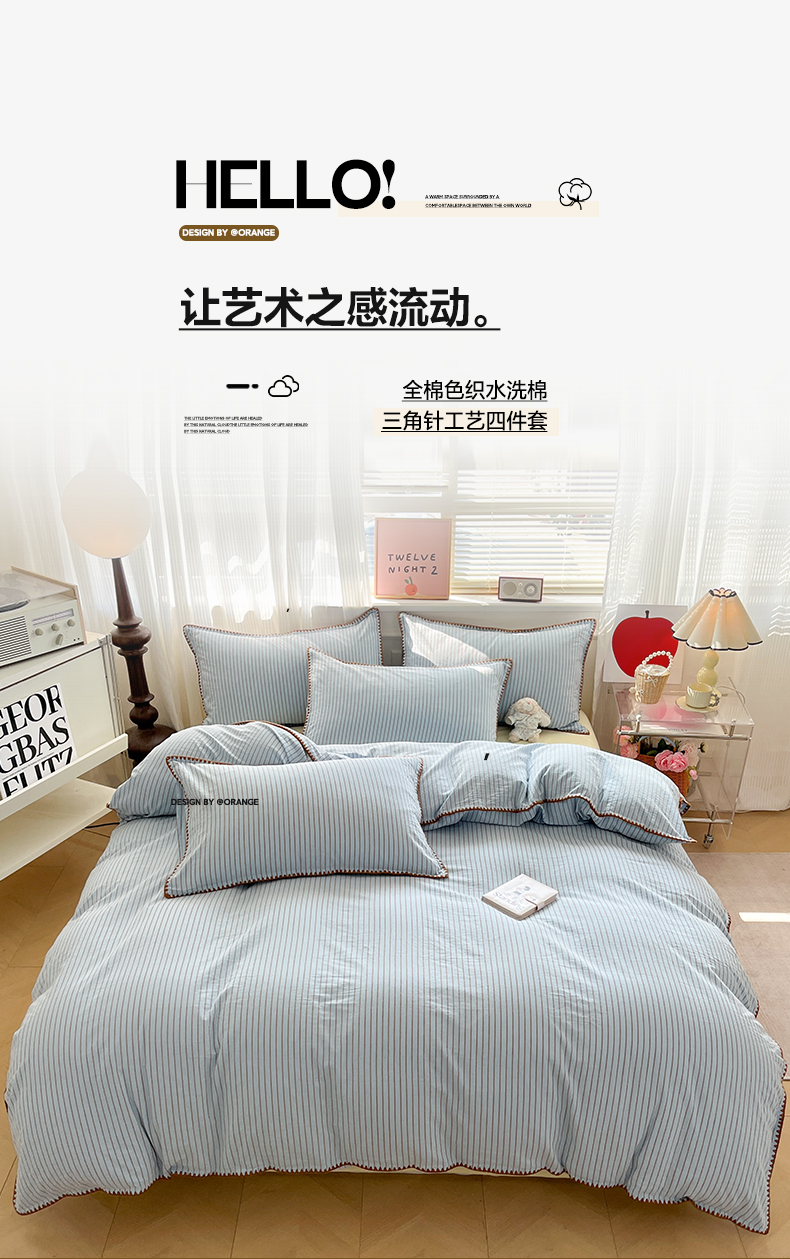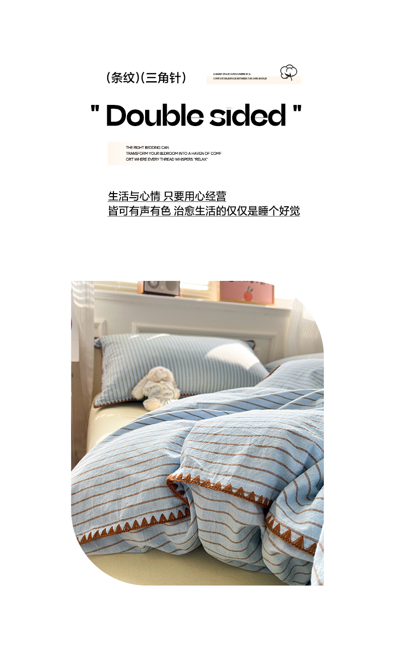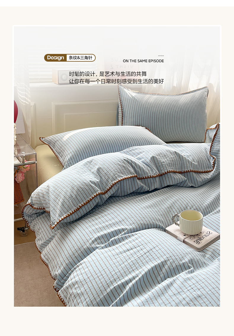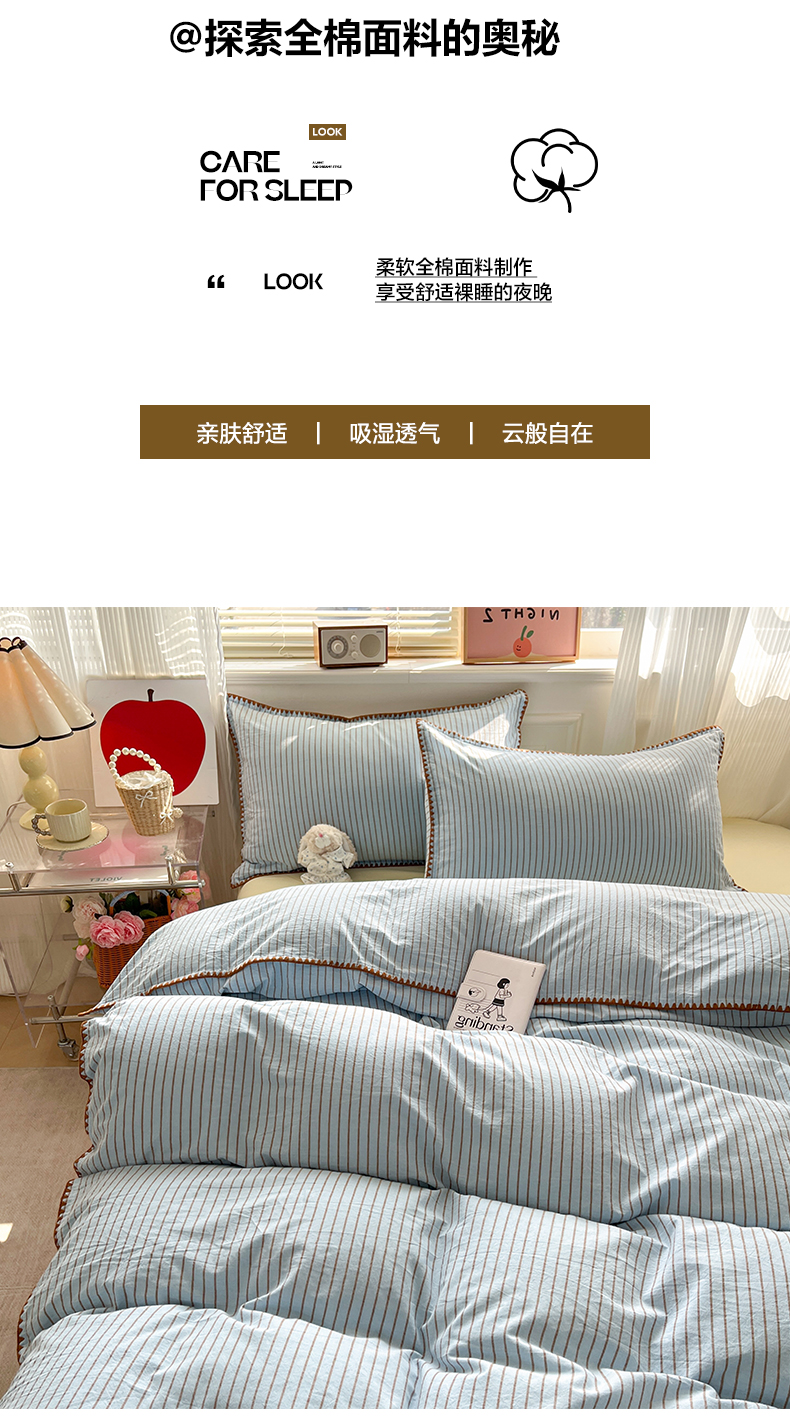 当前位置: 91家纺网 > 商品网购 > 床品套件 > 四件套 > 全棉普通四件套 > 如一 2026春夏新款色织全棉纯棉加密水洗棉条纹三角针四件套 晴空蓝