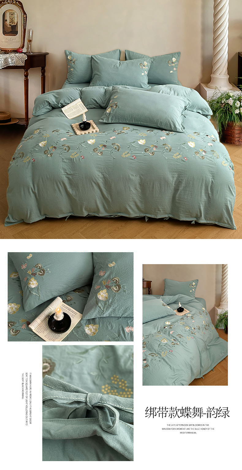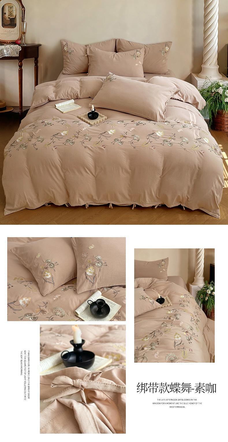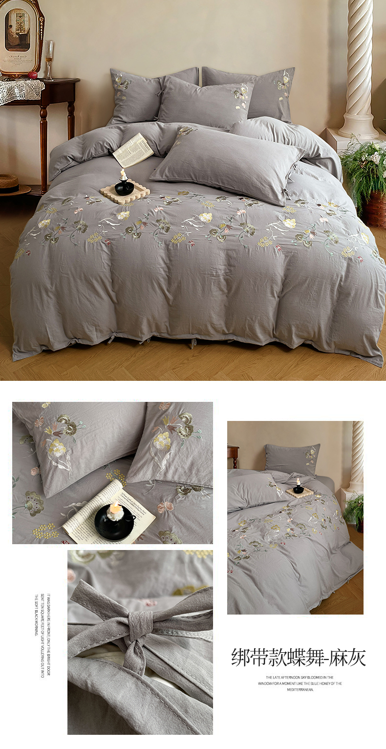 当前位置: 91家纺网 > 商品网购 > 床品套件 > 四件套 > 水洗棉四件套 > yyds网供 2026新款复古刺绣绑带款水洗棉四件套三件套仿全棉纯棉汉麻被套A类高克重-蝶舞系列 绑带款蝶舞-本白