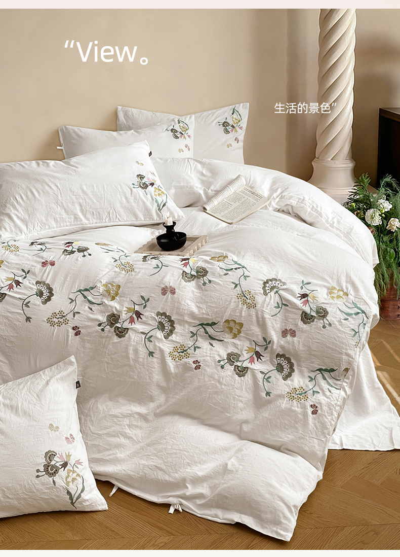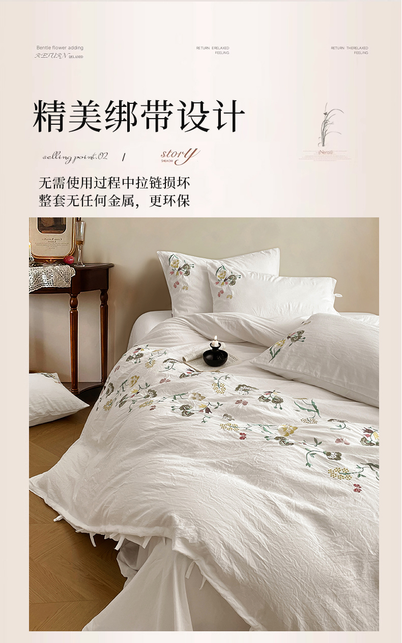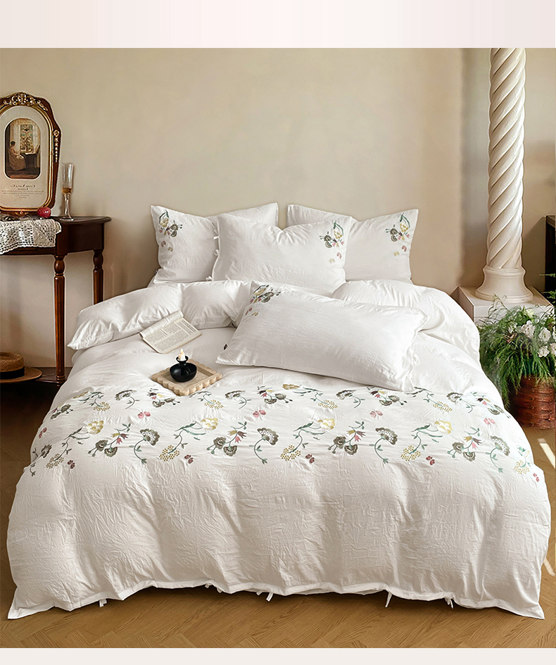 当前位置: 91家纺网 > 商品网购 > 床品套件 > 四件套 > 水洗棉四件套 > yyds网供 2026新款复古刺绣绑带款水洗棉四件套三件套仿全棉纯棉汉麻被套A类高克重-蝶舞系列 绑带款蝶舞-本白