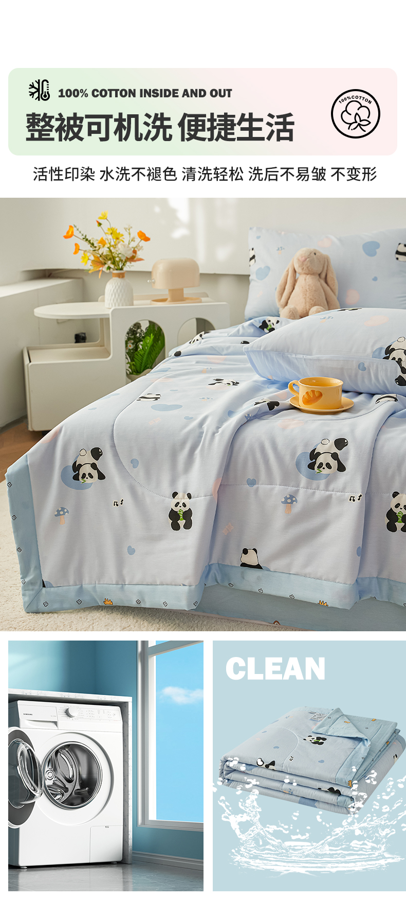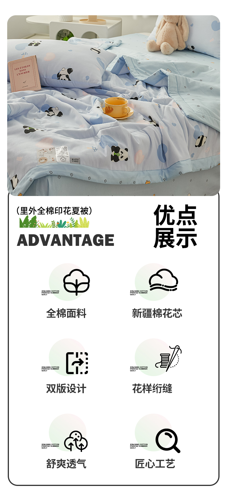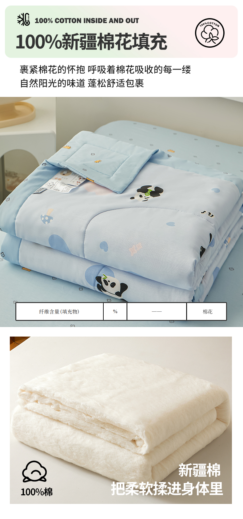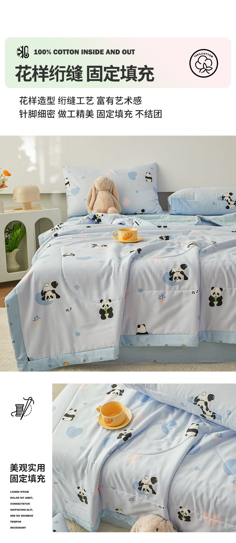 尊妙被业 2026新款小清新花卉里外全棉纯棉棉花被夏被夏凉被空调被 熊猫摇摇乐