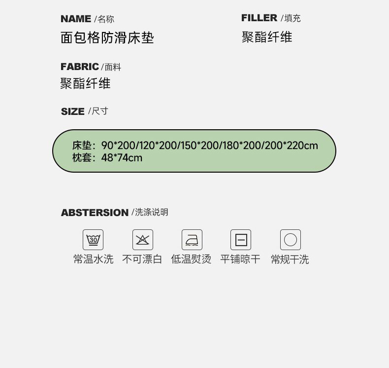 商品名称:(总)宇淳国际 2026新款纯色面包格防滑床垫