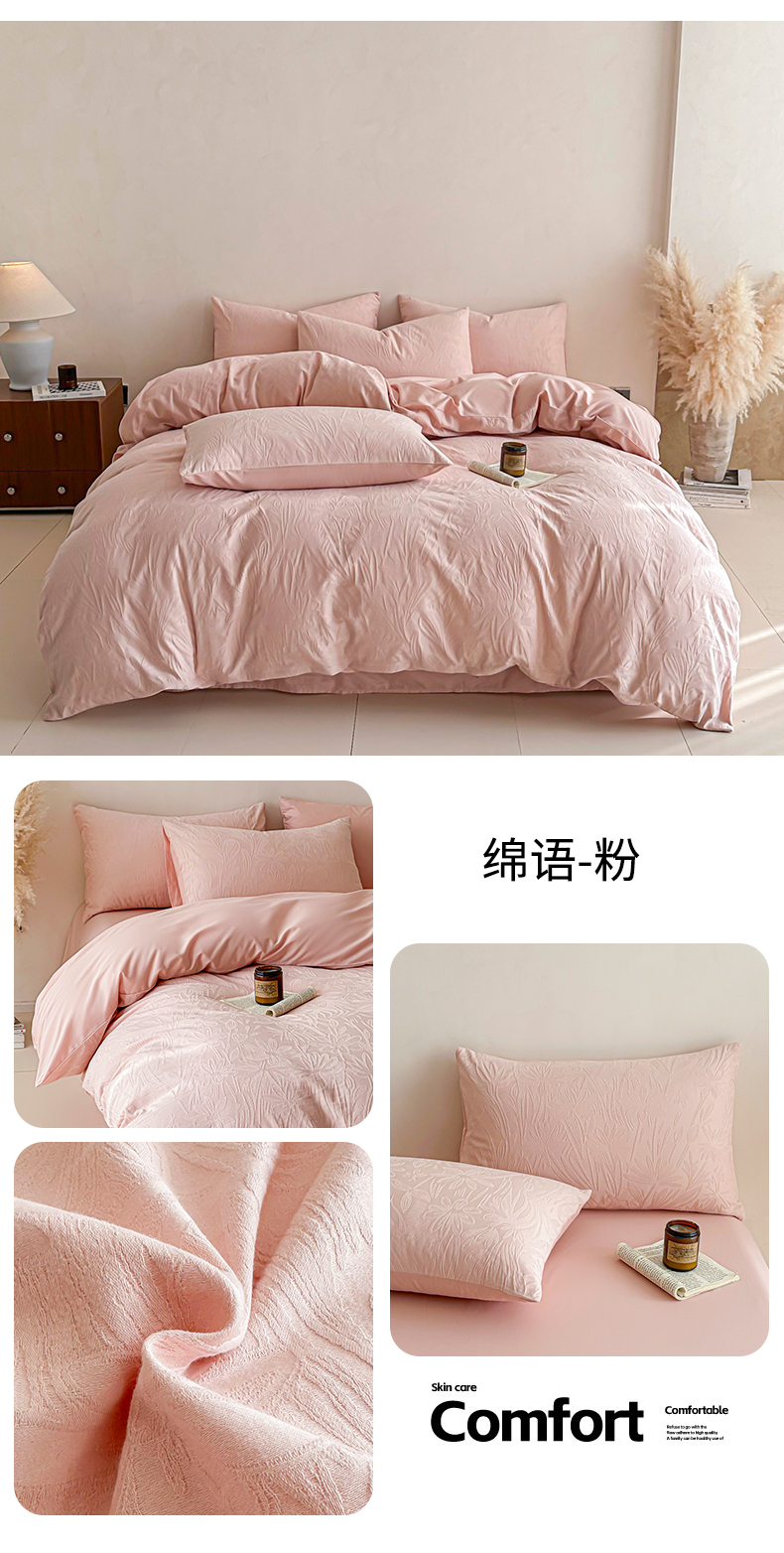 (总)眠博士 2026新款全棉纯棉水洗色织提花股线四件套,套件-未来 蓝,套件-未来 粉,套件-未来 灰,套件-素简 粉,套件-素简 蓝,套件-素简 米