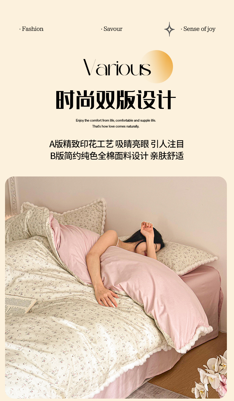 (总)羚羊语家纺 2026新款全棉法式赫本风花边四件套40支纯棉轻法式13372小清新喷气印花四件套被套床单床笠三件套,甜憩间,采薇南山,椿亭序Pro,第七重梦,绀雾纱,青禾枕梦,柔蓝一水,时光花礼,组合