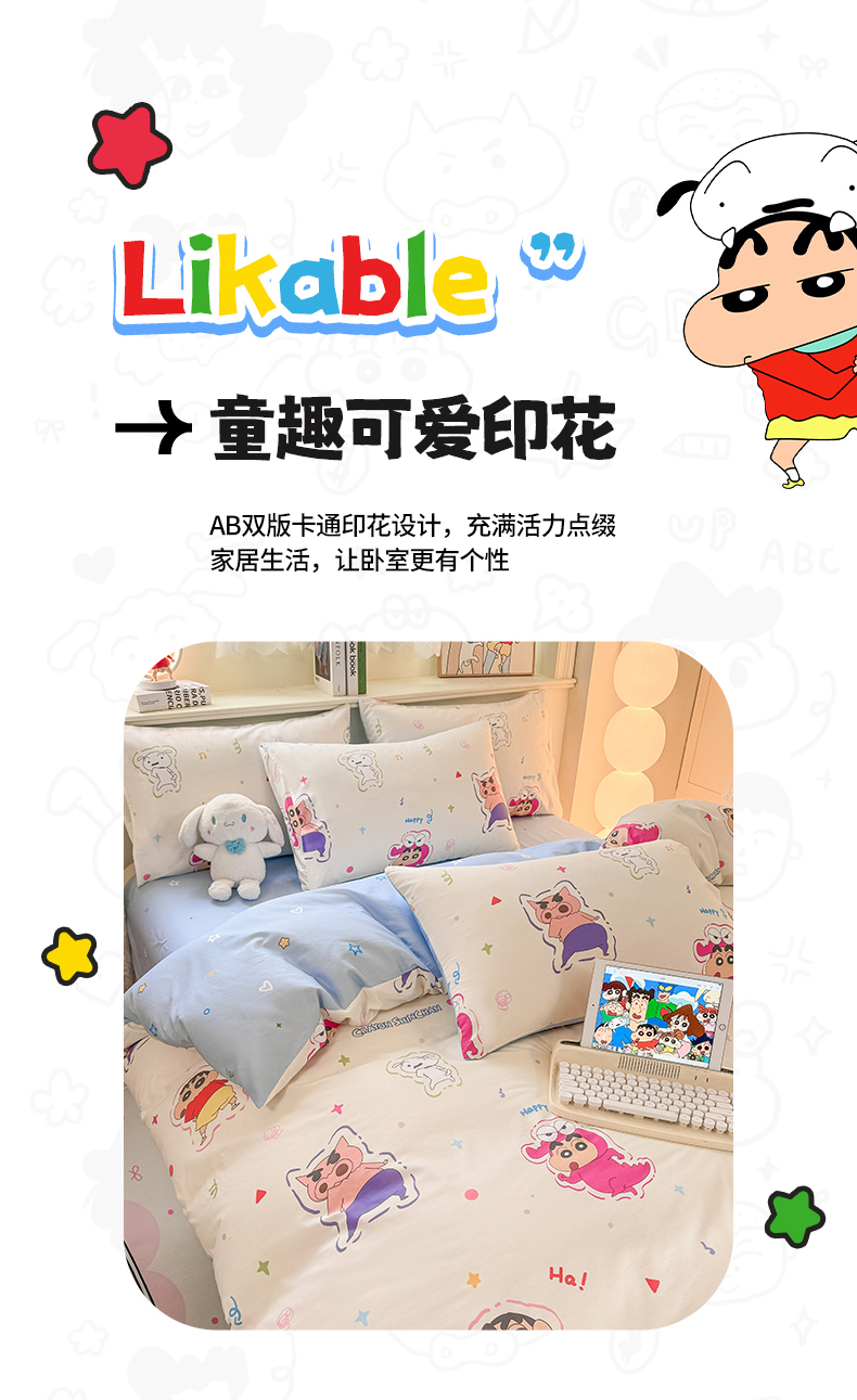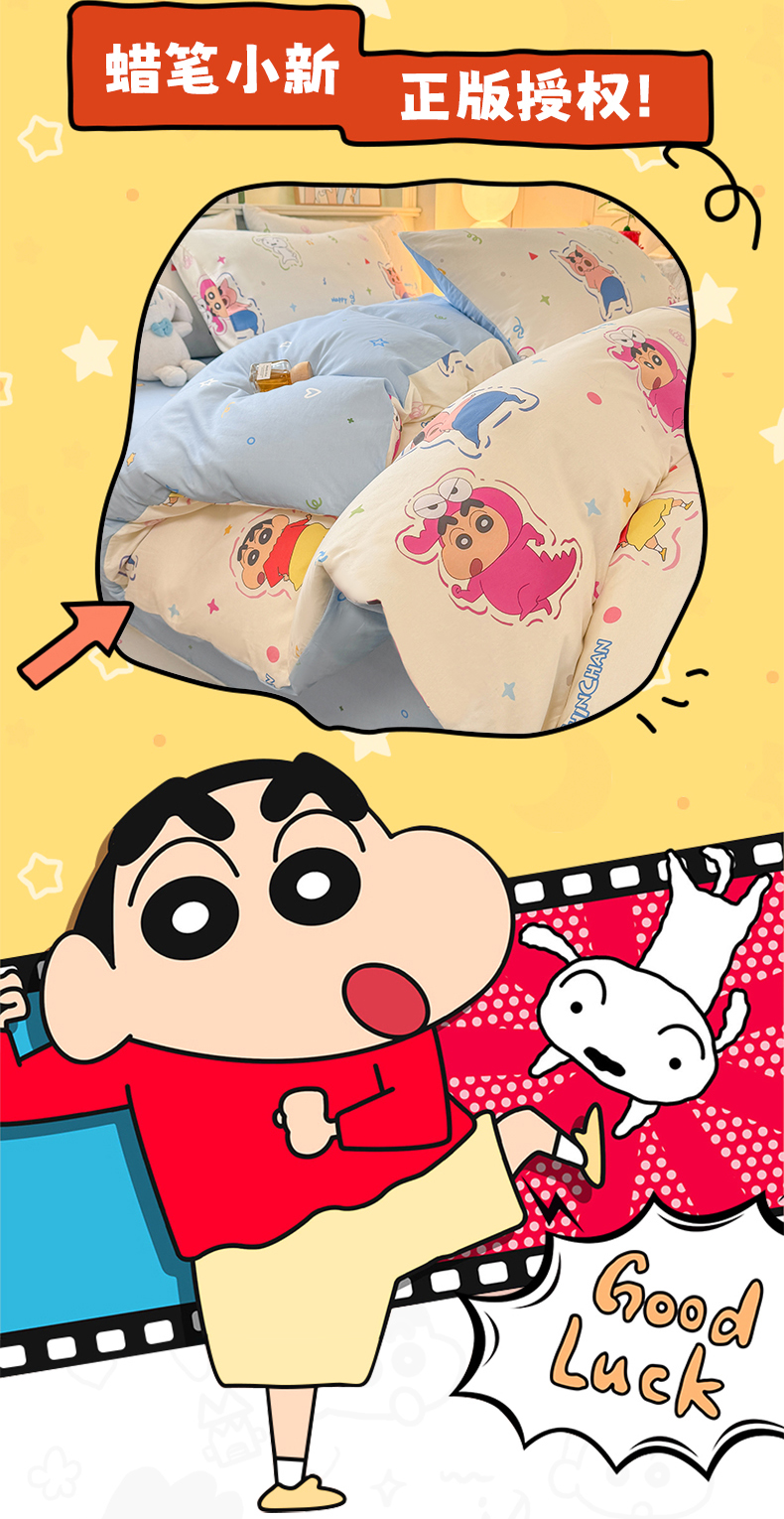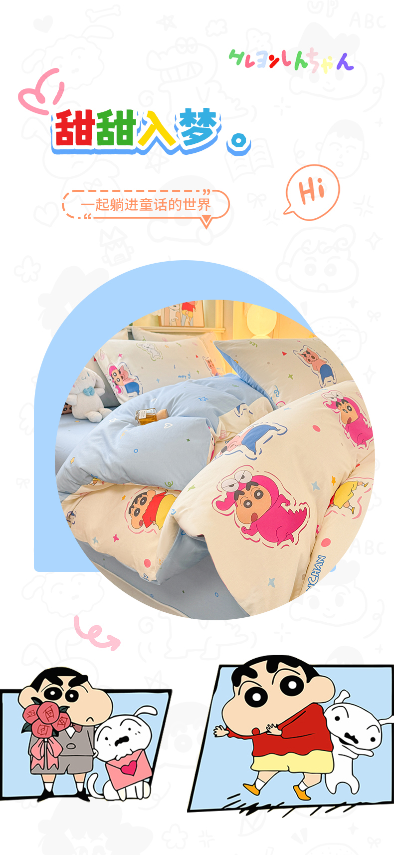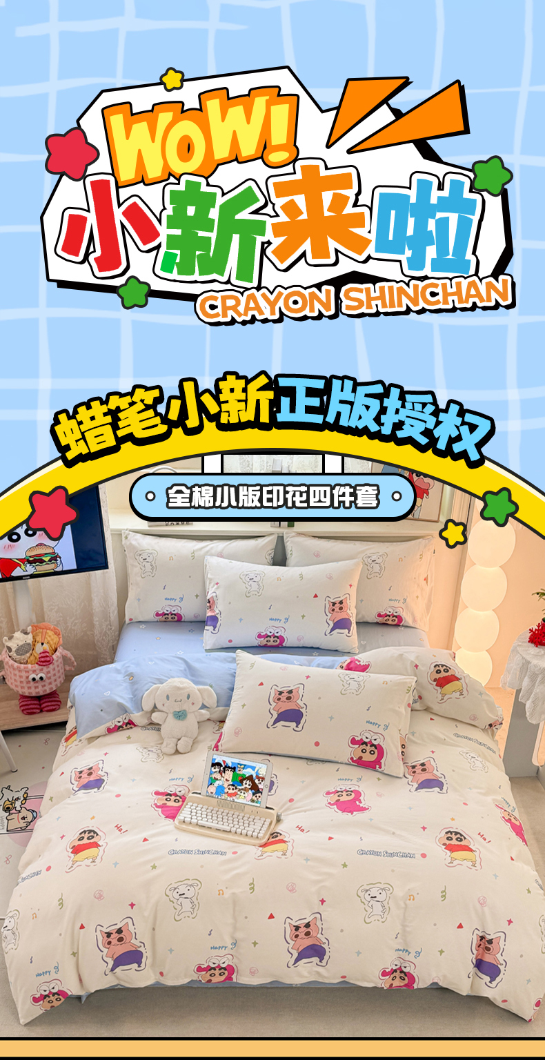 当前位置: 91家纺网 > 商品网购 > 床品套件 > 四件套 > 全棉普通四件套 > 博雅 2026新款蜡笔小新纯棉全棉四件套 小版-小彩带蜡笔小新
