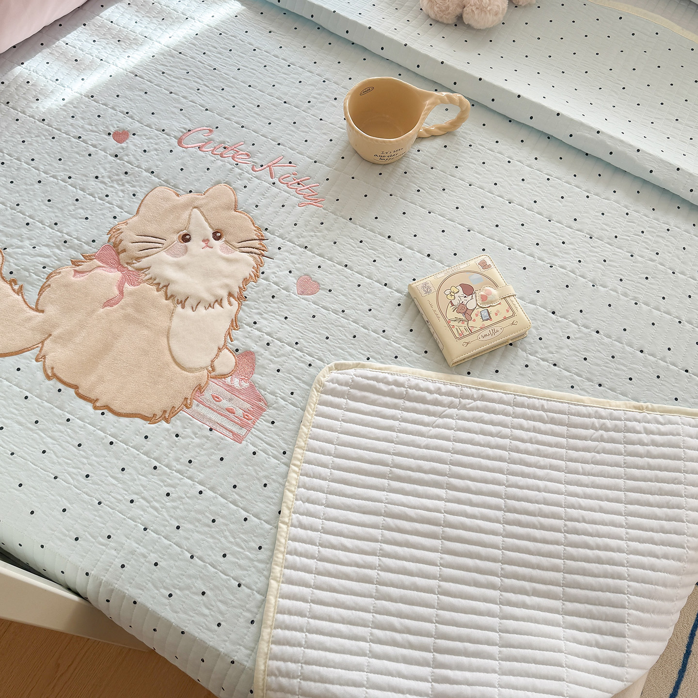 商品名称:吾欢心 2026新款水洗棉可爱卡通贴布绣花床盖单品床盖单件三件套 沙发狗