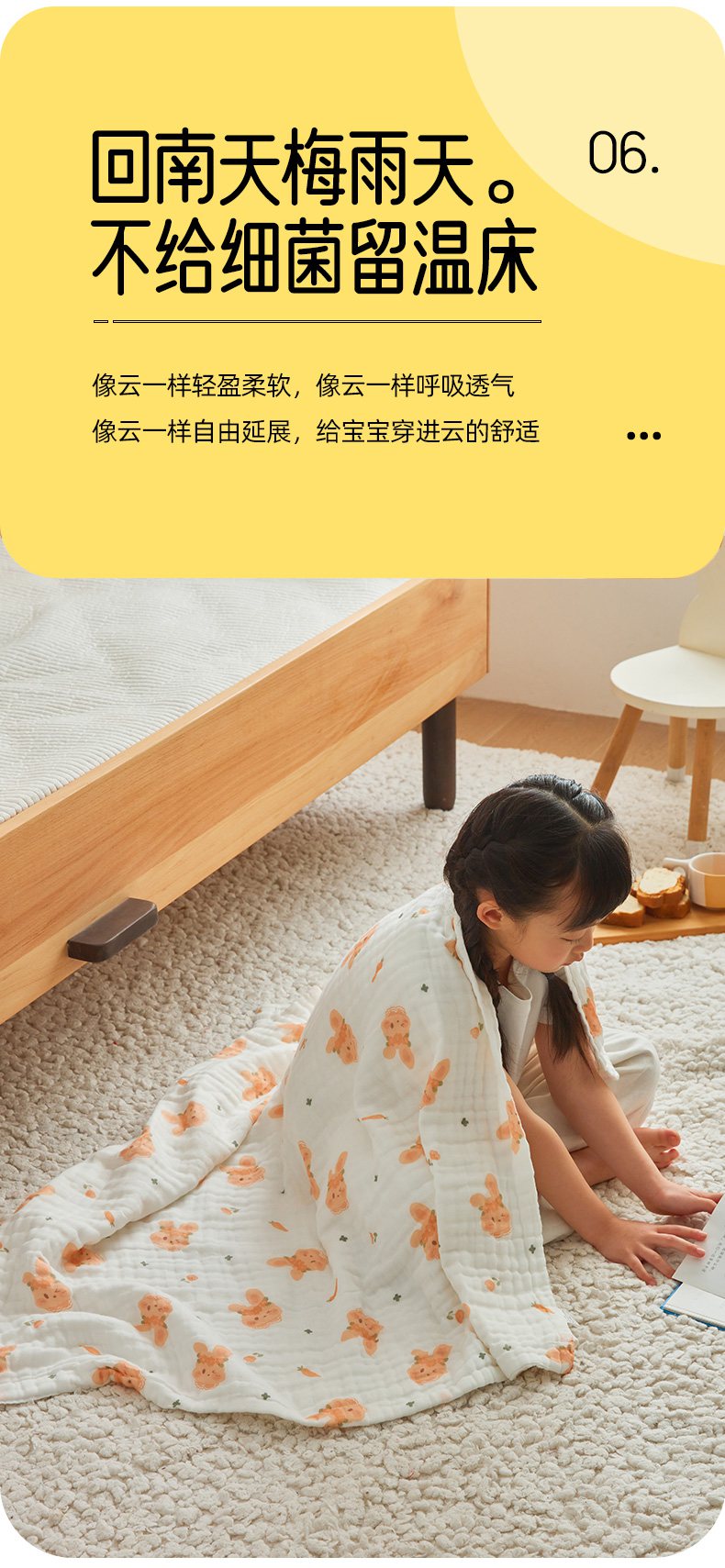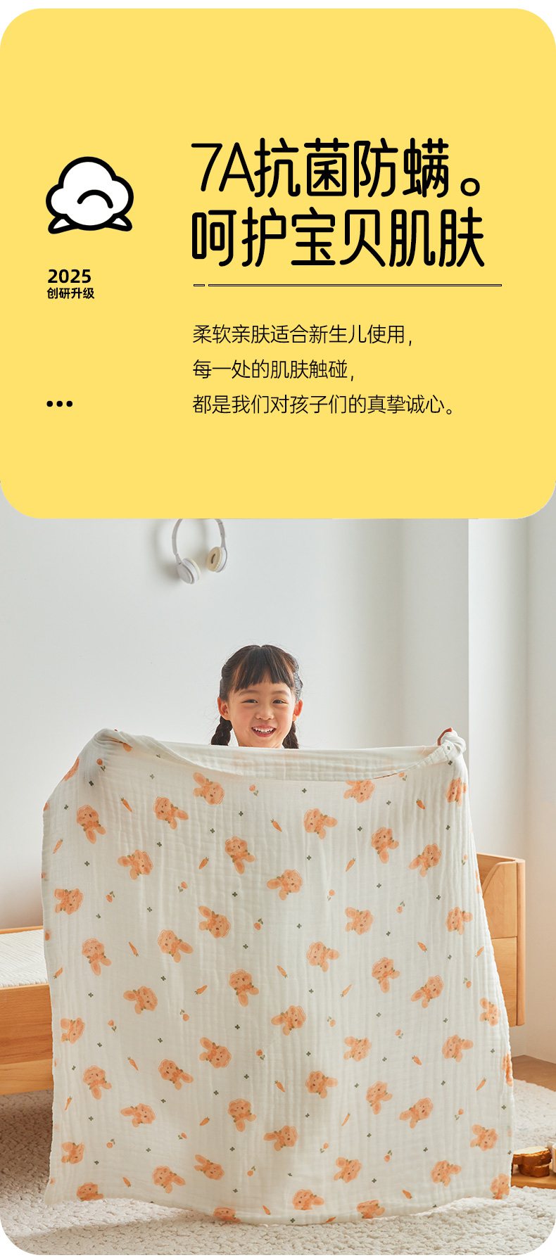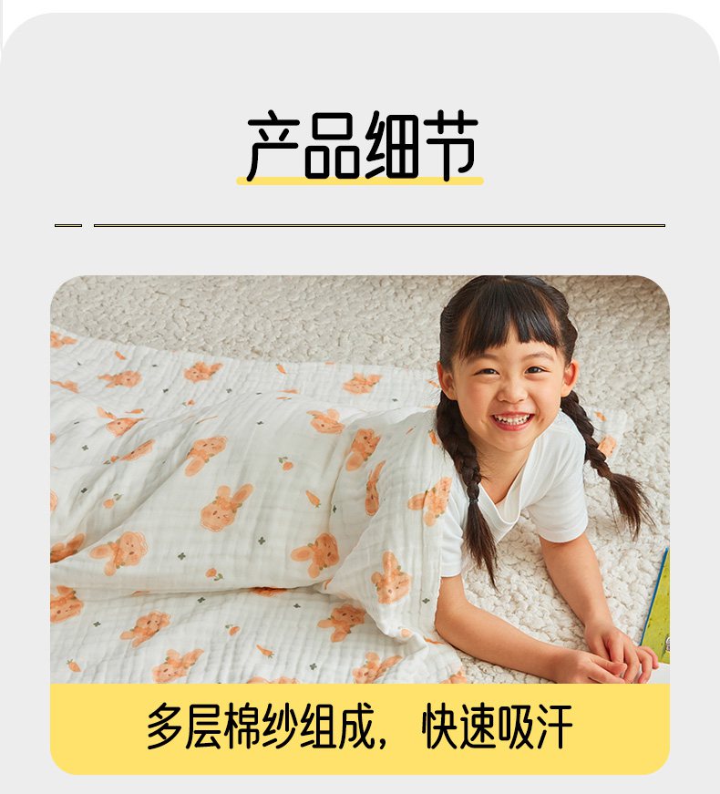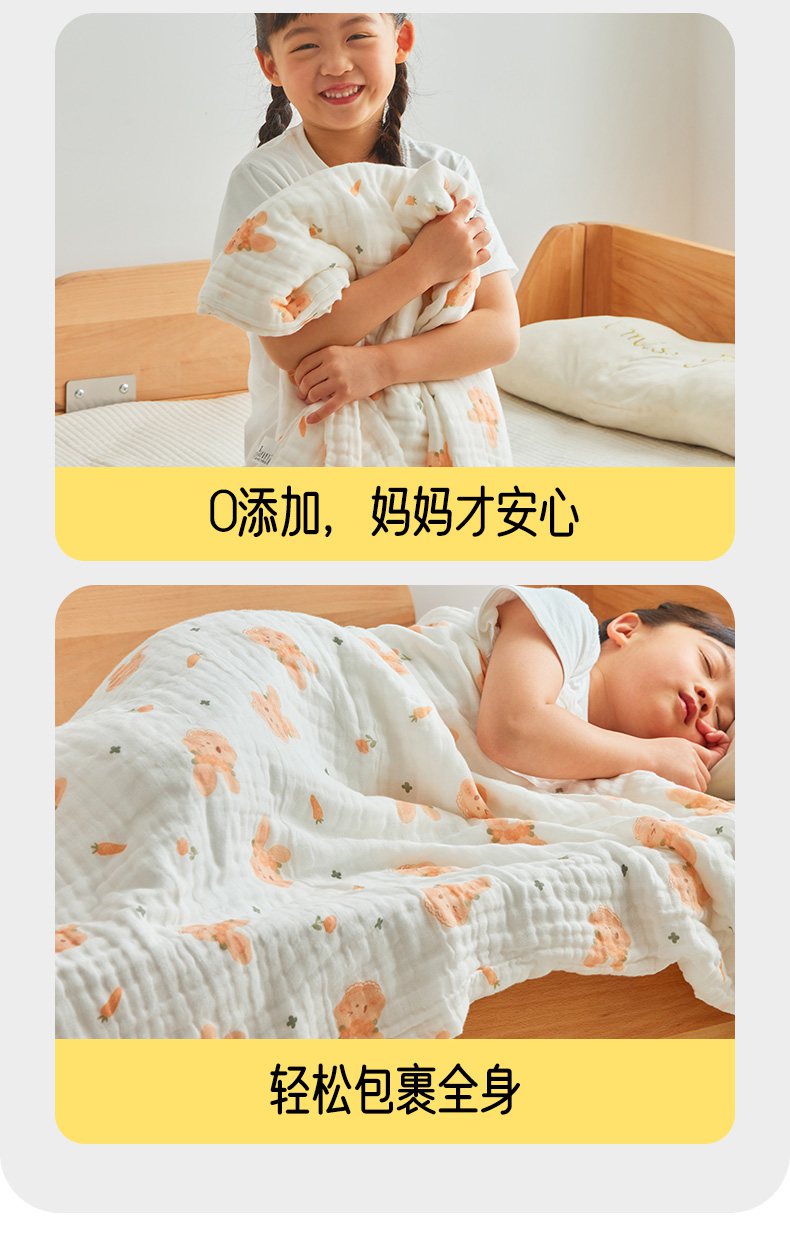 商品名称:嗨生活 2026新款A类婴幼儿童夏凉空调被子浴巾六层纱布毛巾被纯棉办公室幼儿园午睡盖毯子 呆萌兔
