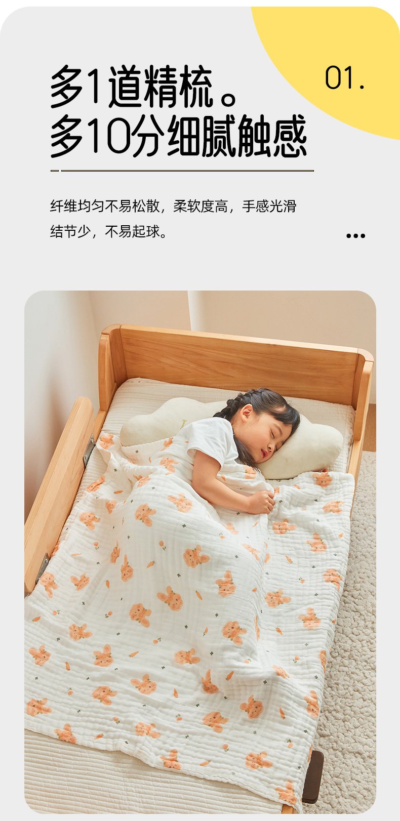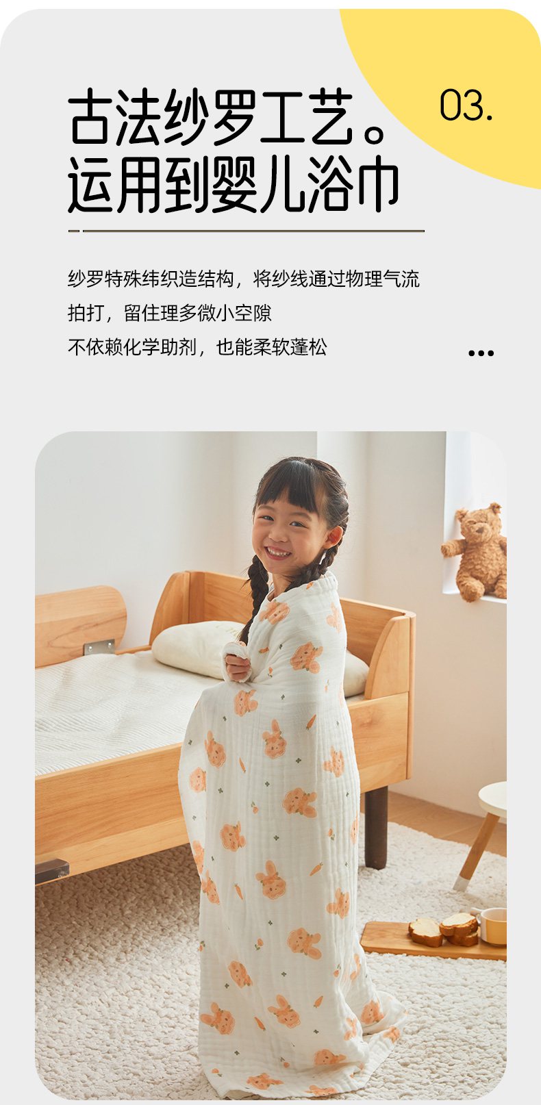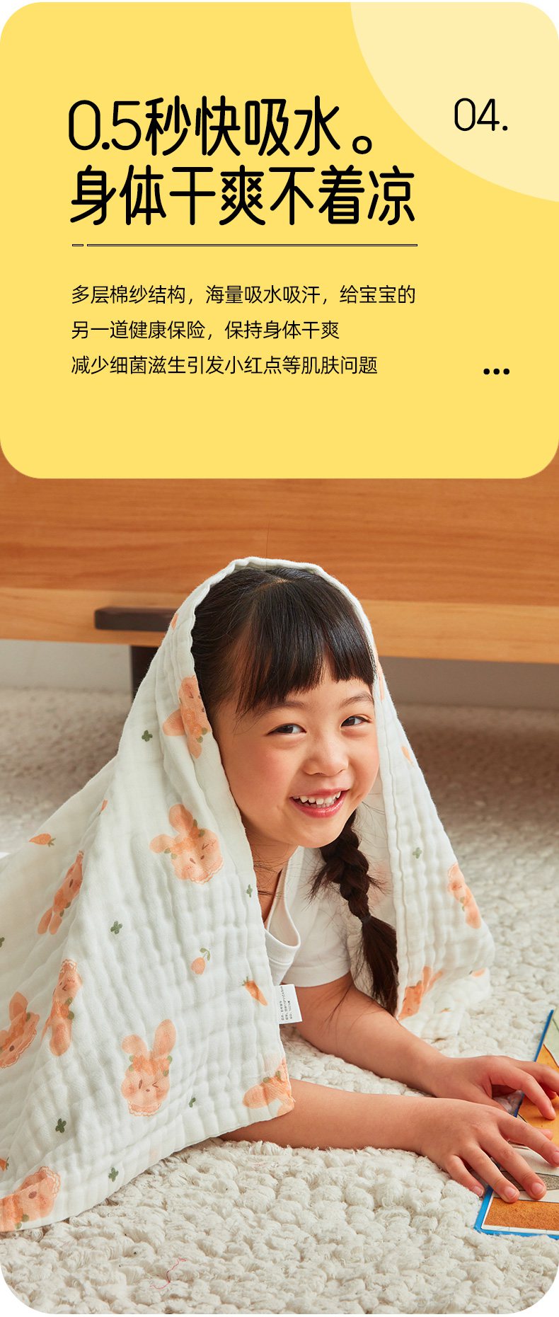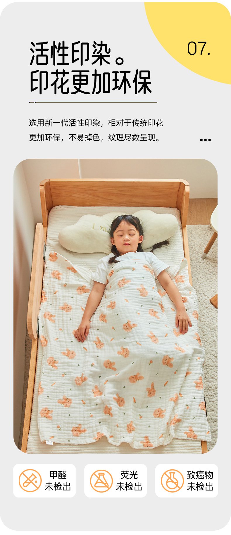 商品名称:嗨生活 2026新款A类婴幼儿童夏凉空调被子浴巾六层纱布毛巾被纯棉办公室幼儿园午睡盖毯子 呆萌兔
