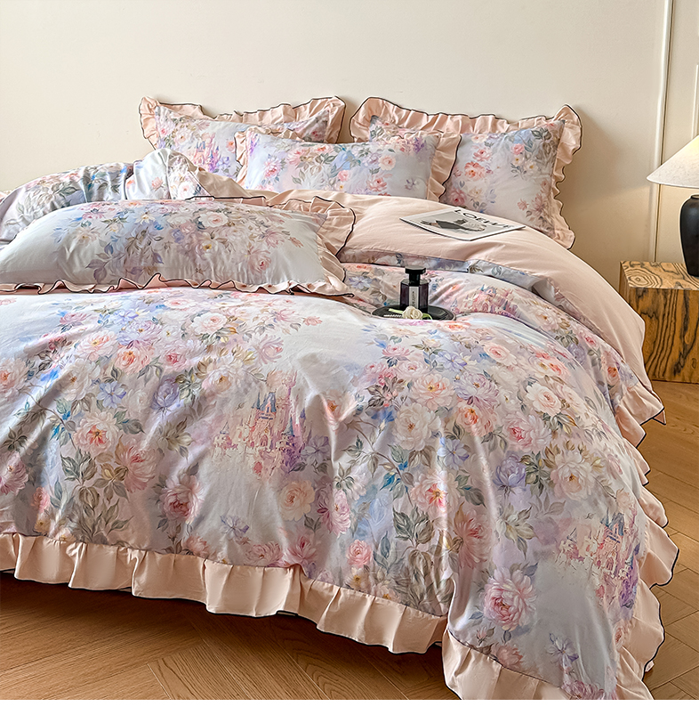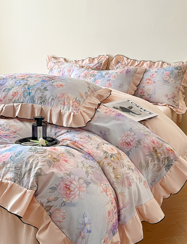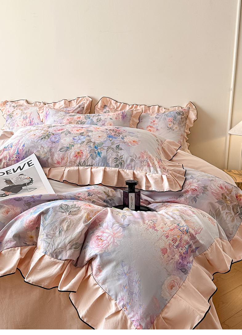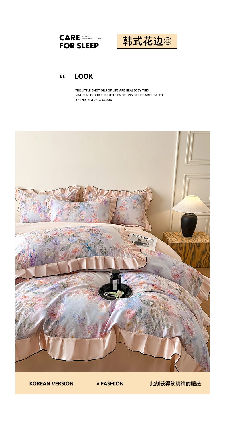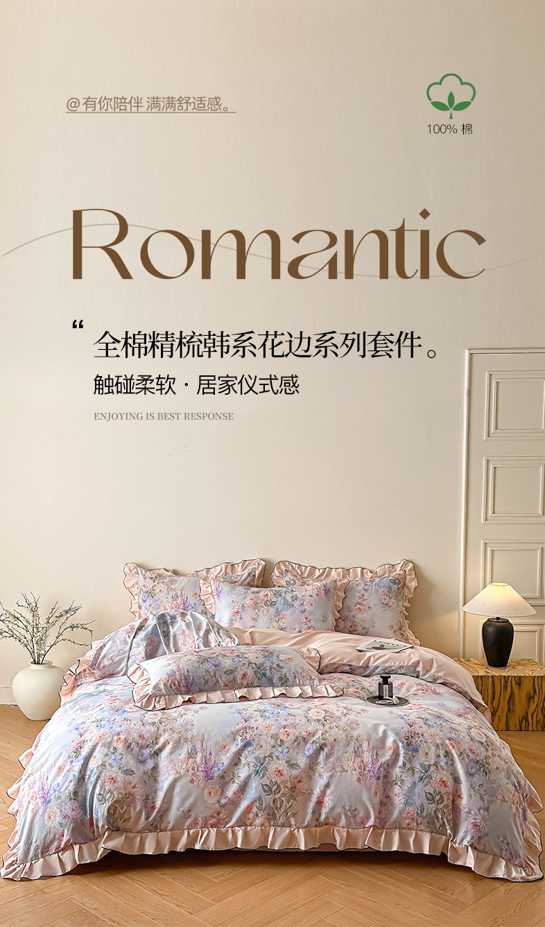 格里芬家纺 2026新款全棉精梳棉韩系花边款印花四件套 露兮