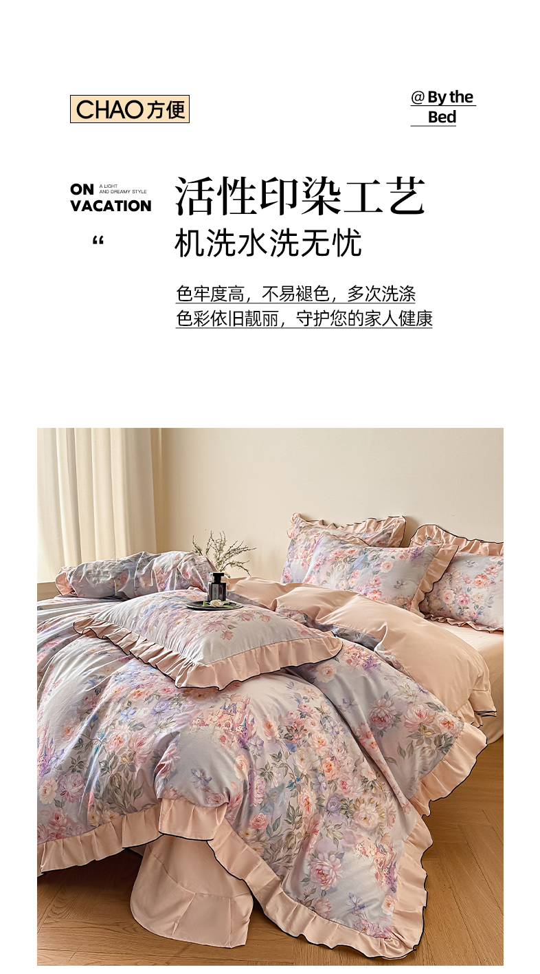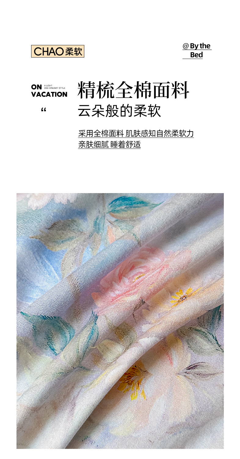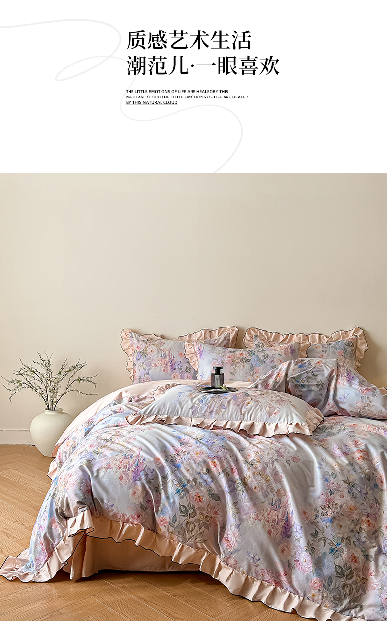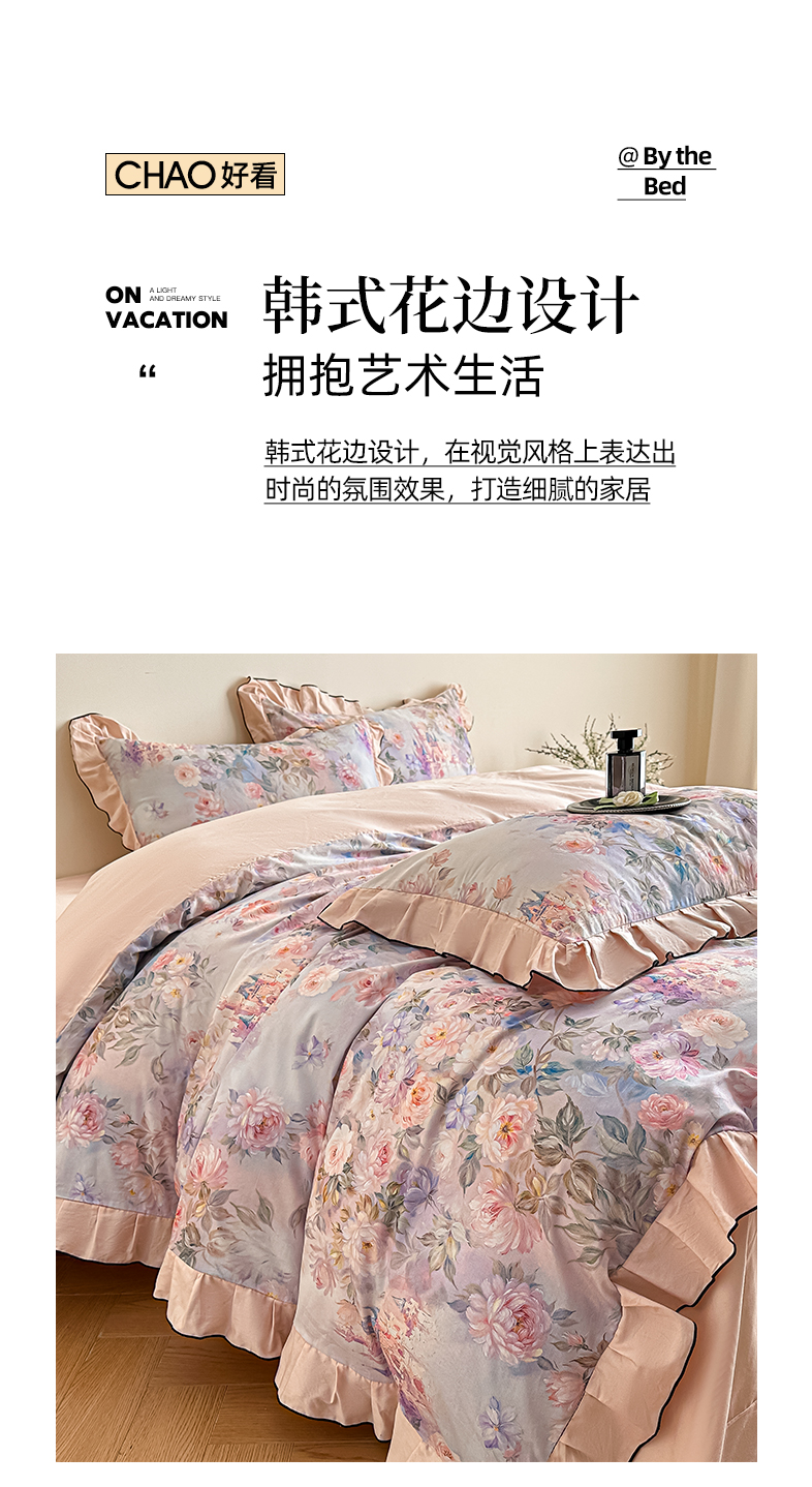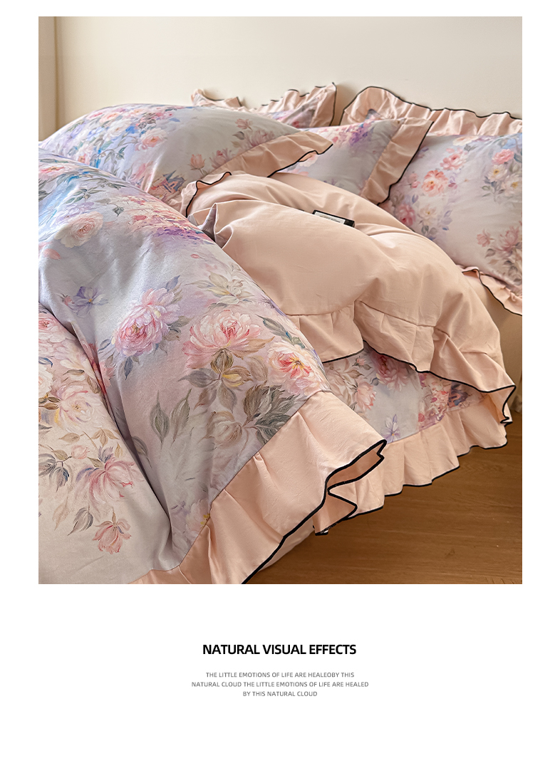 商品名称:格里芬家纺 2026新款全棉精梳棉韩系花边款印花四件套 露兮
