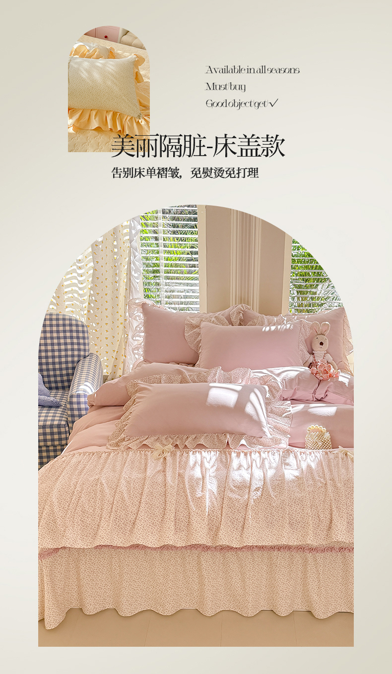 (总)(总)专柜品质苏米娜家纺2026春夏韩版法式公主风水洗棉床盖款多功能二合一被套 夏被床盖四件套--花颜系列,花颜-樱花粉 ,花颜-梦幻蓝 ,花颜-奶油白 ,花颜-嫩芽绿 ,花颜-香芋紫