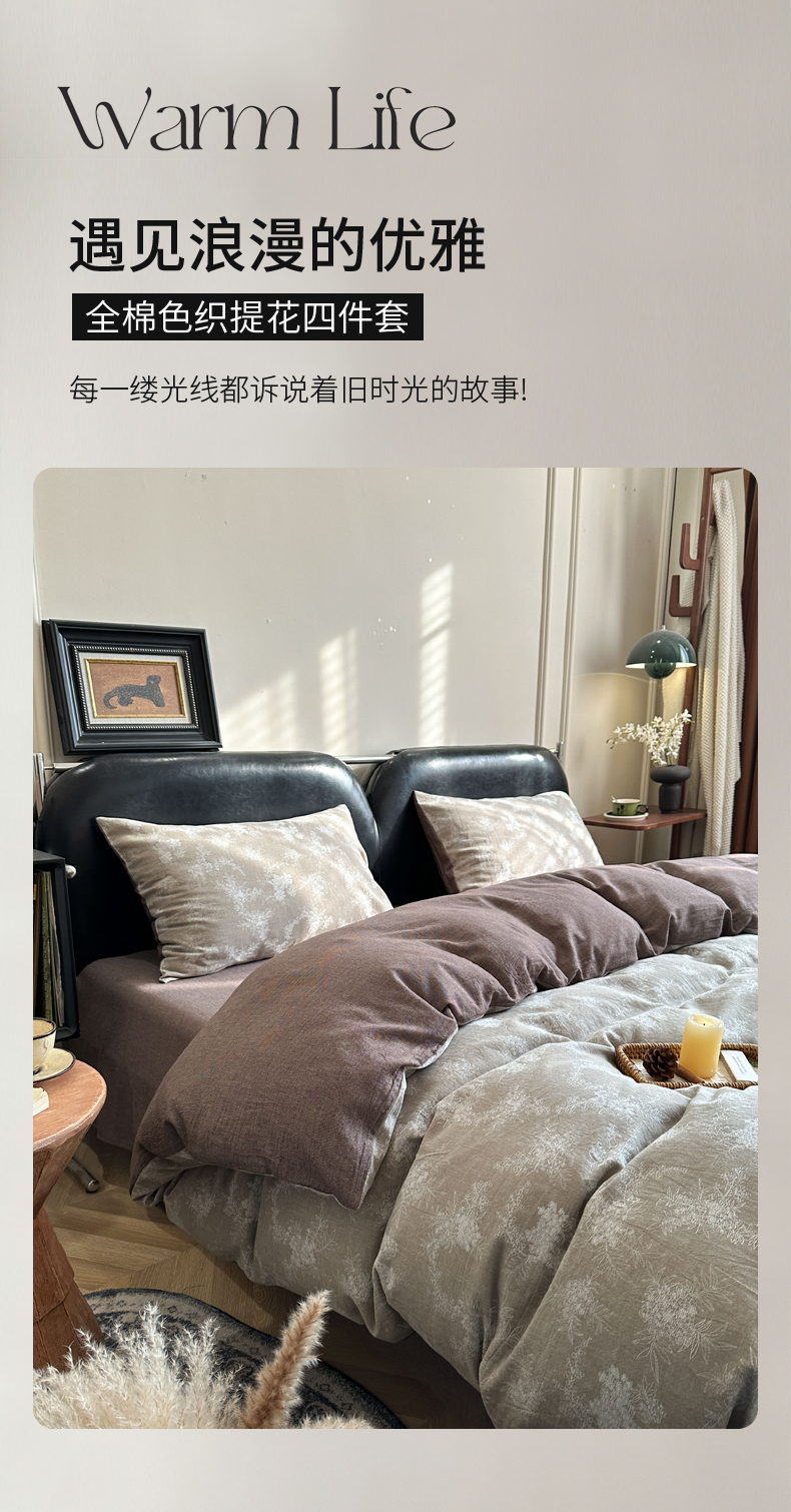 (总)米菲 2026新款全棉色织提花四件套,花絮,克洛伊-灰,玲珑格,蜜语-牛仔蓝,蜜语-香橙,叶伴-浅灰,叶伴-浅绿