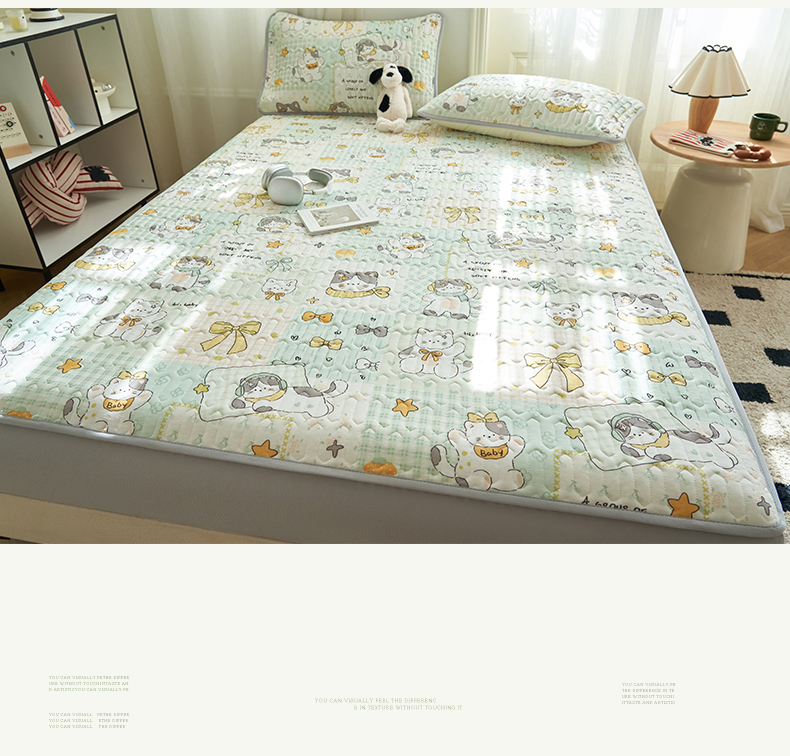 • 91家纺网 家纺一手货源 找家纺 恒爱家纺 2026新款A类凉感丝夏被床笠系列三件套四件套 奶猫