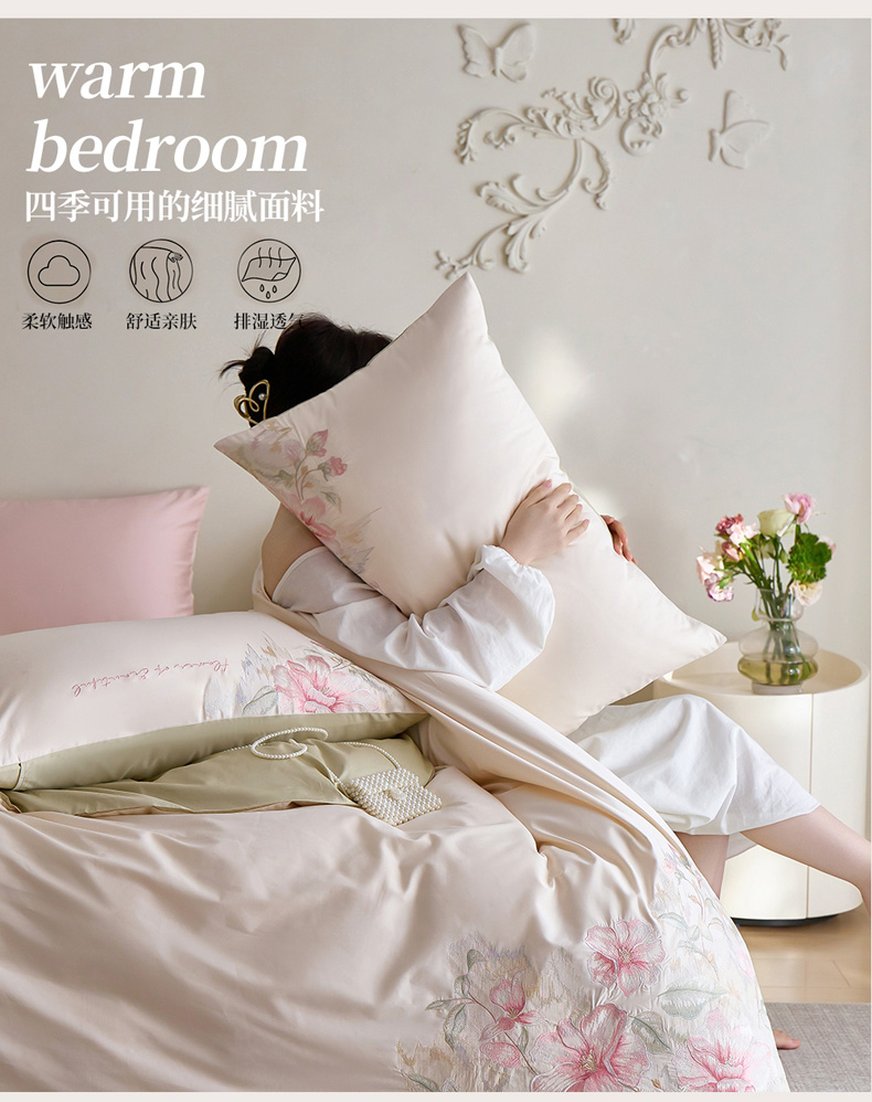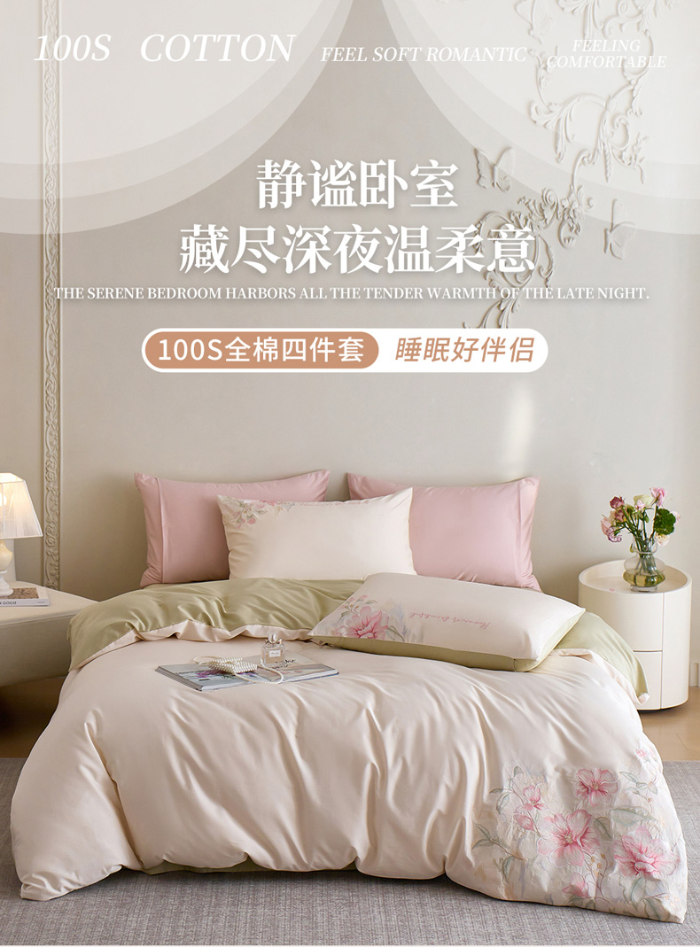 (总)爱缦 2025新款100支新疆长绒棉刺绣四件套-时光系列,时光-薄荷青,时光-芙蓉粉,时光-元气白桃