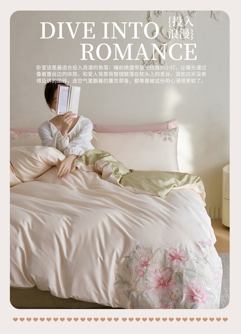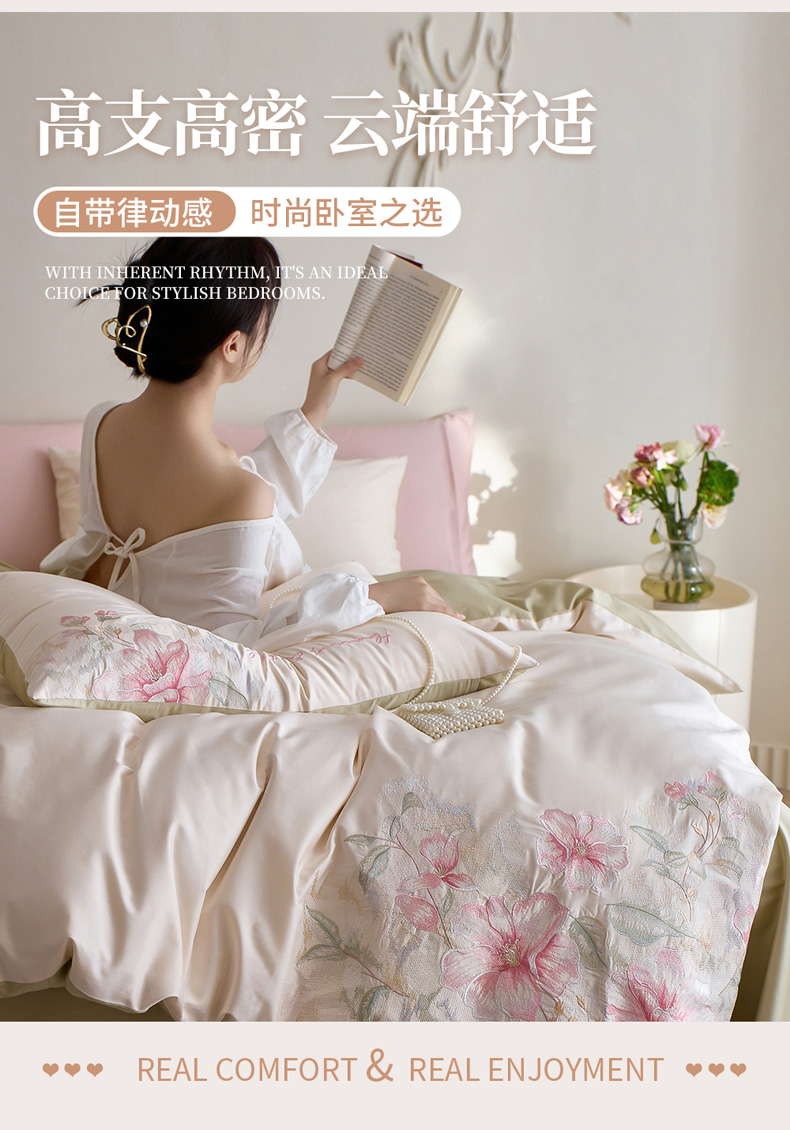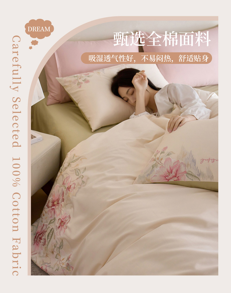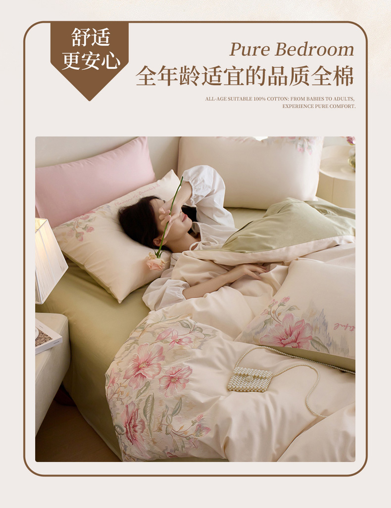 (总)爱缦 2025新款花草自春风系列100支新疆长绒棉四件套,柏林少女,清水芙蓉,云朵吐司