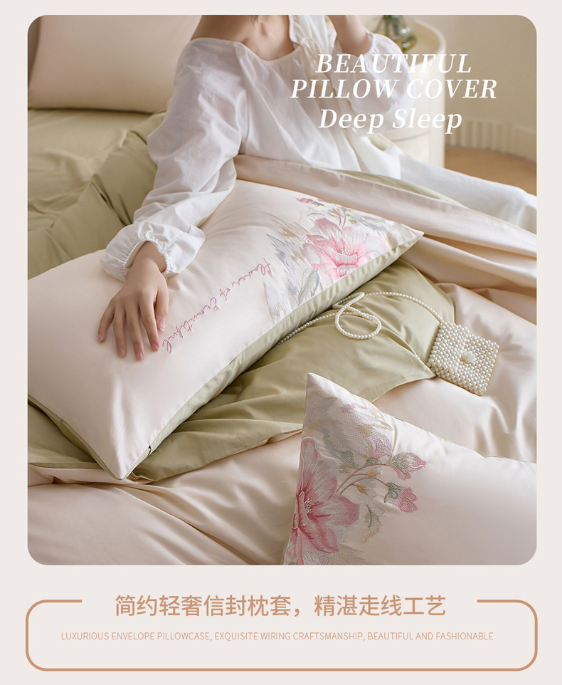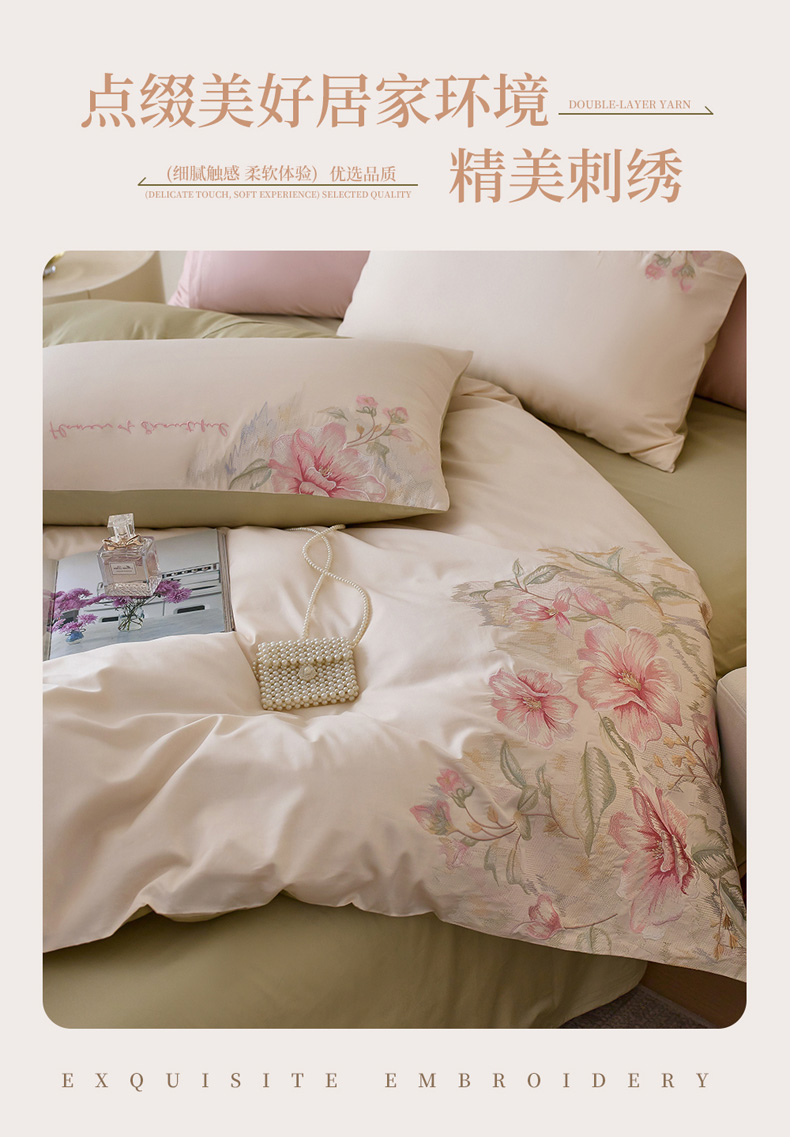 (总)爱缦 2026新款100S全棉CR工艺极简轻奢刺绣四件套-花海郁金系列风格二(券后控价:标准288,大号308),花海郁金-白粉色,花海郁金-白绿色,花海郁金-粉色,花海郁金-蓝色
