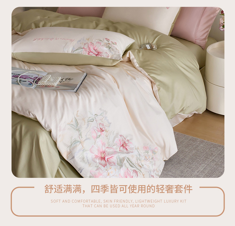 (总)爱缦 2026新款100S全棉CR工艺极简轻奢刺绣四件套-花海郁金系列风格一(券后控价:标准288,大号308),花海郁金-白粉色,花海郁金-白绿色,花海郁金-粉色,花海郁金-蓝色