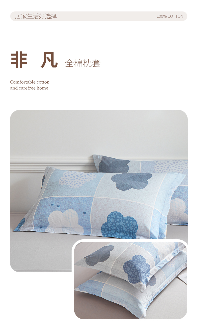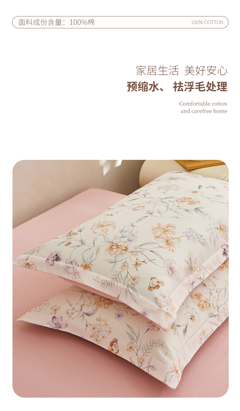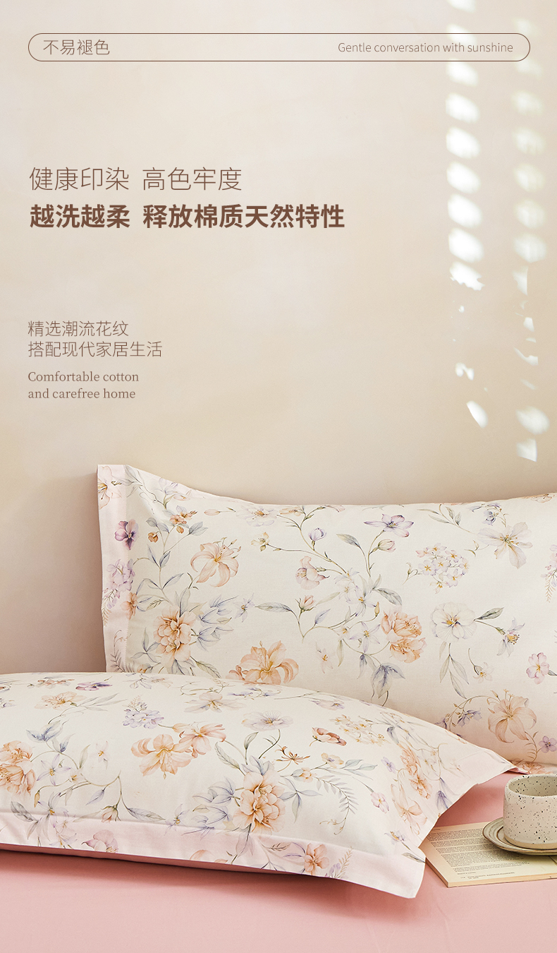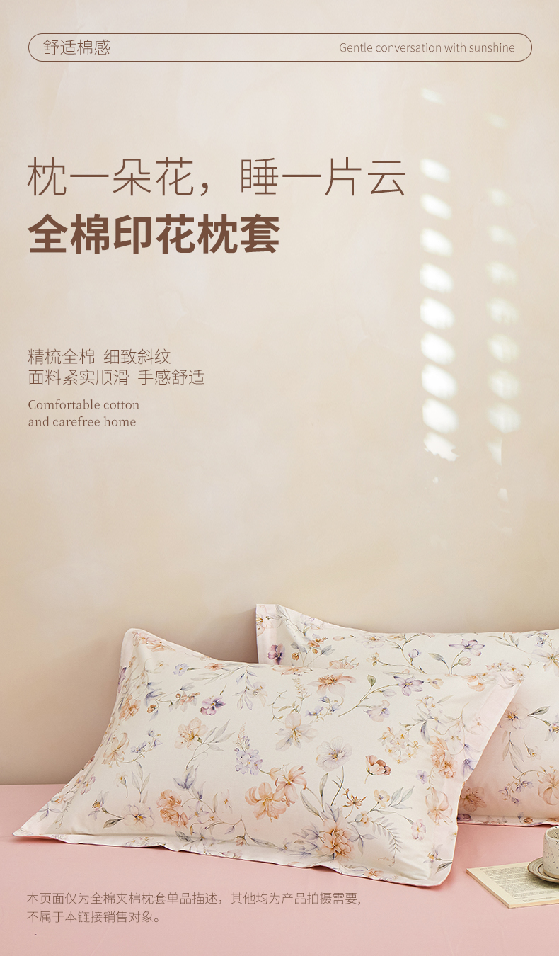 商品名称:元元家居(元元被业) 2026新款全棉13372套件及单品【印花款】-单枕套 春晓米