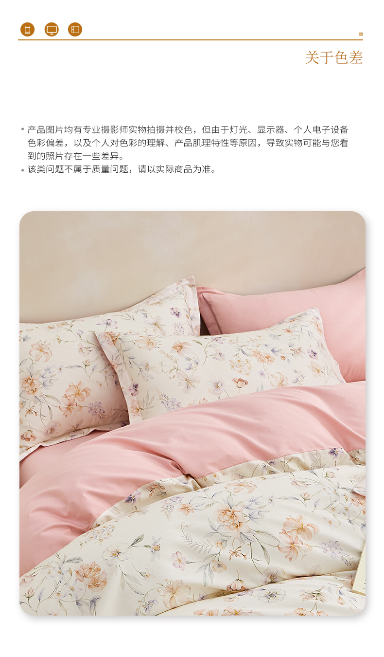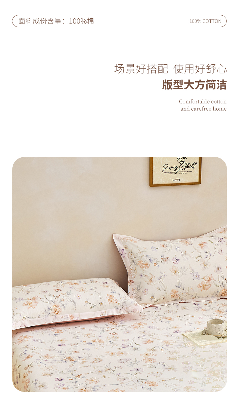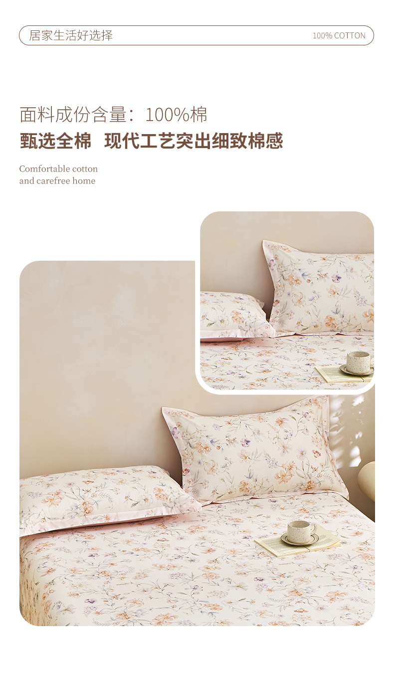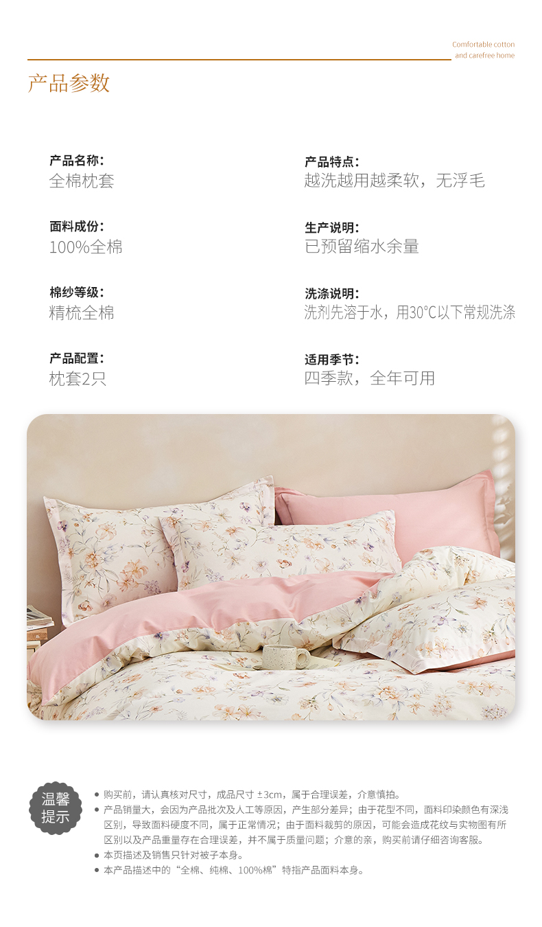 商品名称:元元家居(元元被业) 2026新款全棉13372套件及单品【印花款】-单枕套 春晓米
