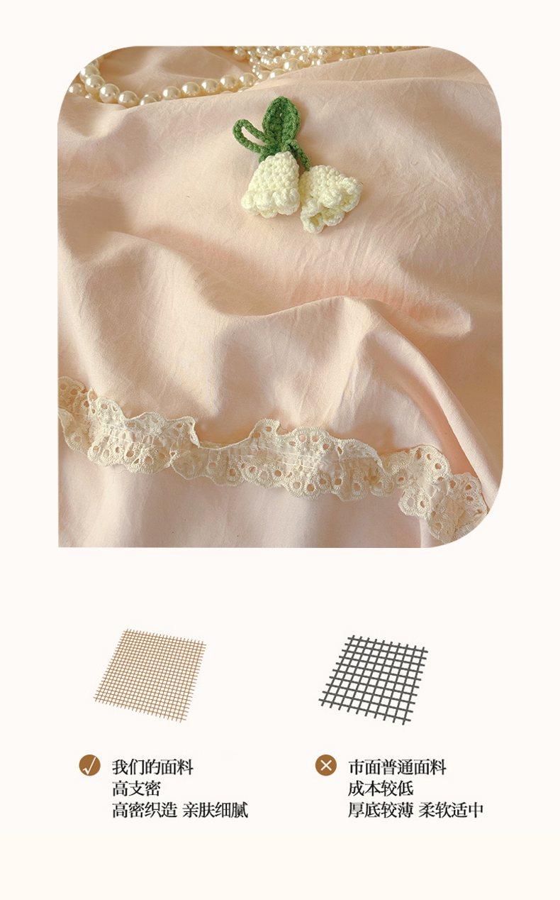 (总)庭笙 2025新款仙女小清新褶皱裙边少女背带公主裙摆法式梦幻纱蕾丝四件套,公主裙摆-米白,公主裙摆-浅粉