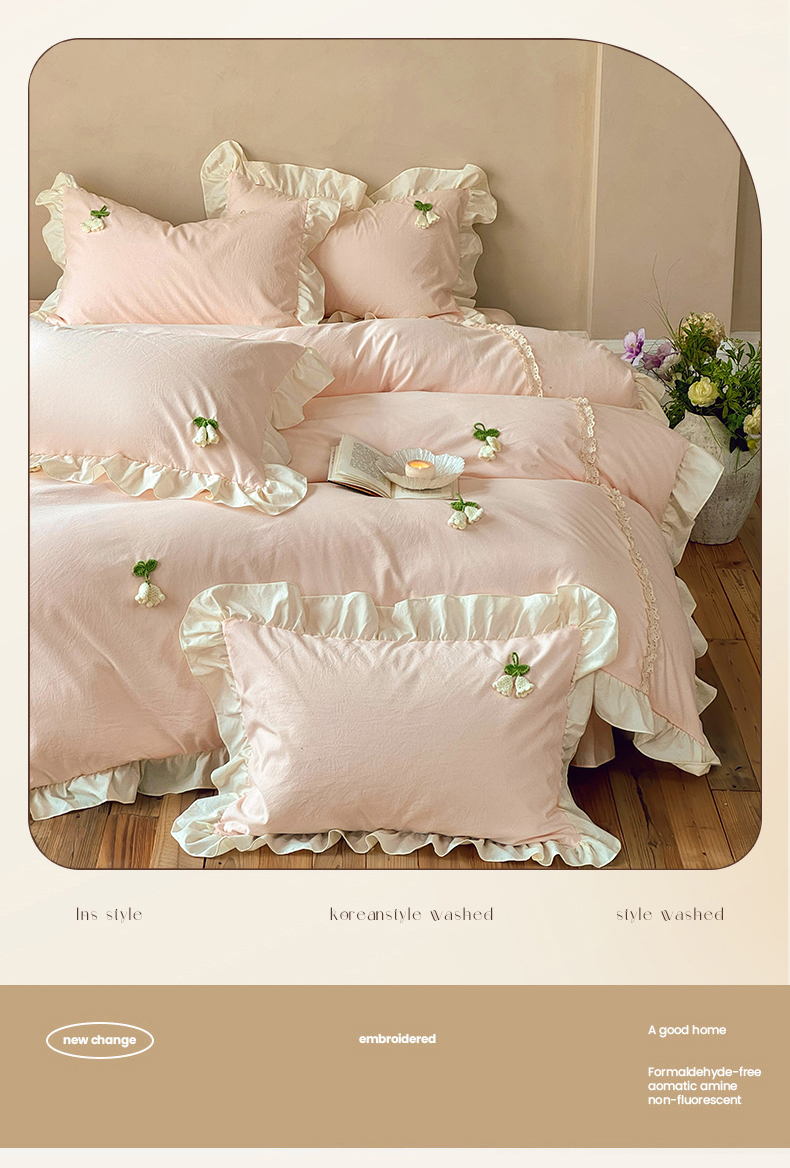 (总)庭笙 2026新款古法水洗棉感法式立体花韩版花边四件套-铃兰妙语,铃兰妙语-粉,铃兰妙语-蓝,铃兰妙语-绿,铃兰妙语-紫
