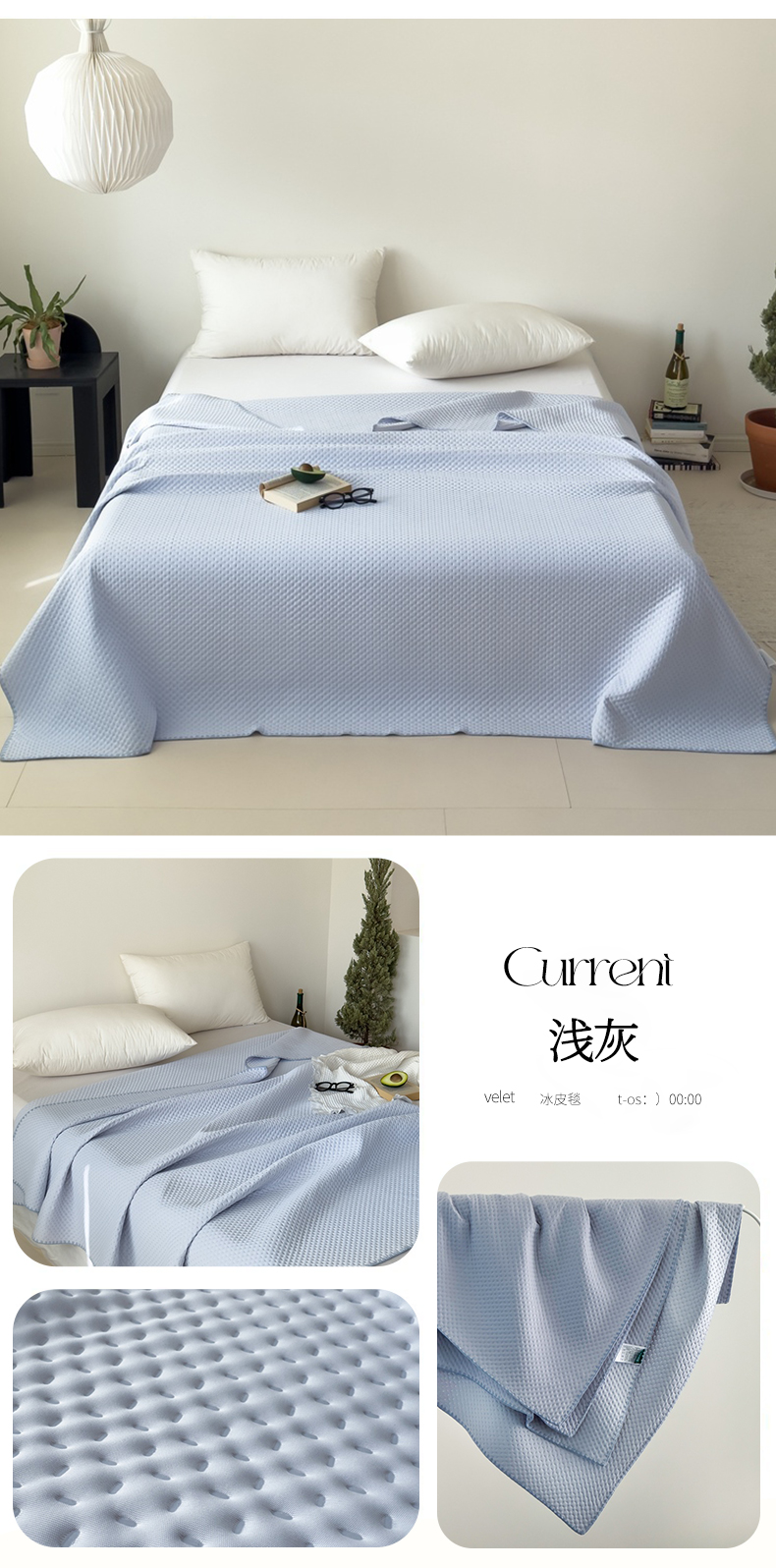 (总)法芙娜家纺 2026新款双面160克锦纶凉感小冰皮毯,粉色,绿色,浅灰,浅蓝,深灰,紫色,叠拍