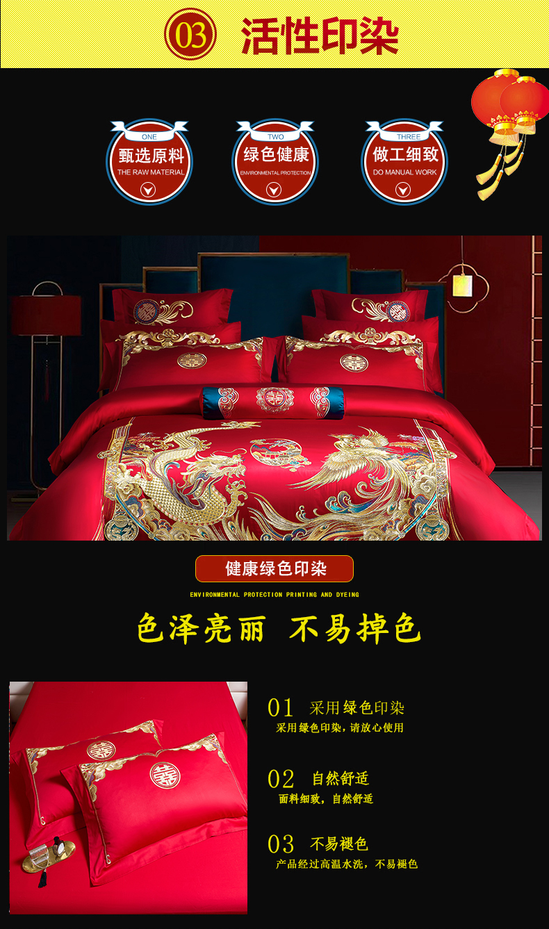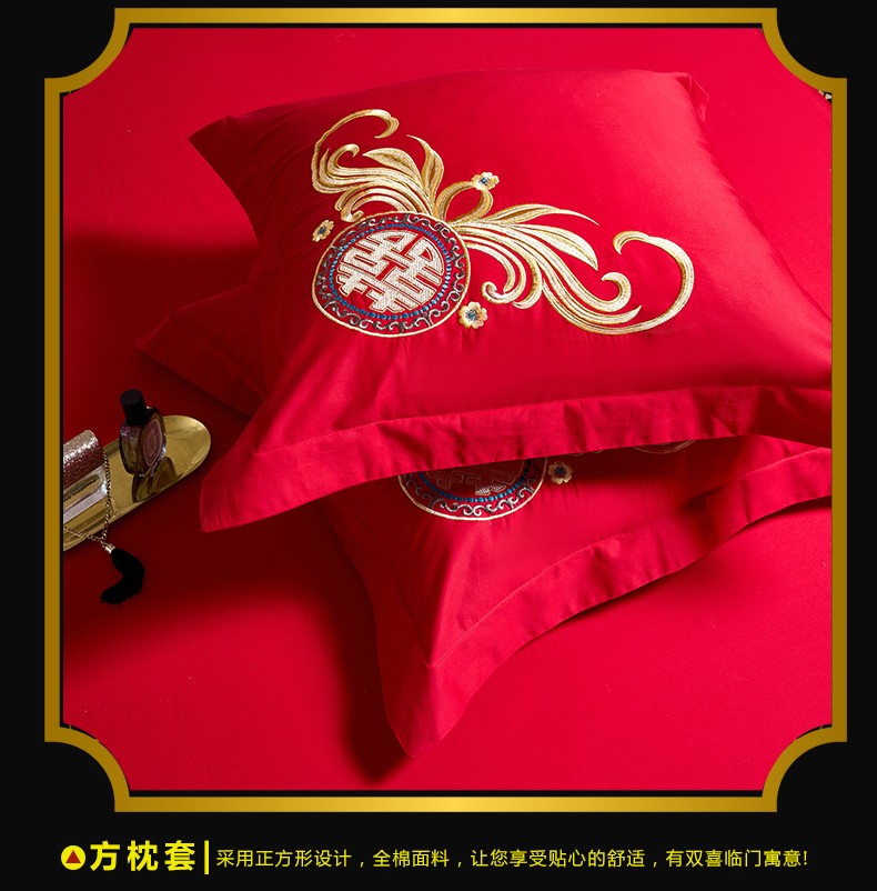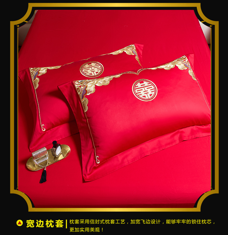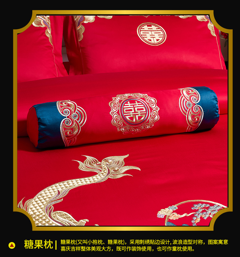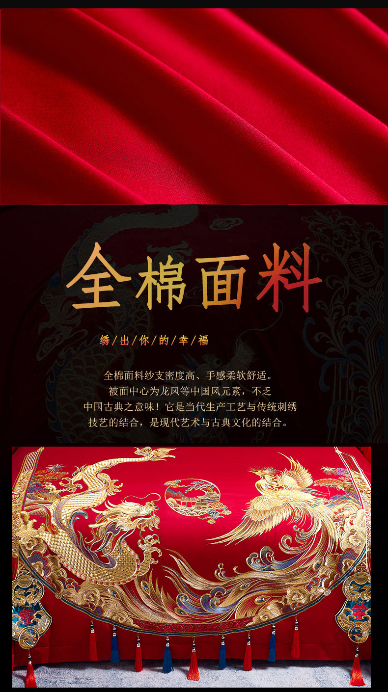 当前位置: 91家纺网 > 商品网购 > 床品套件 > 四件套 > 婚庆四件套 > 慕她家纺 2026年全棉纯棉婚庆四件套大红色刺绣结床上用品(床盖款加40) 华贵龙凤