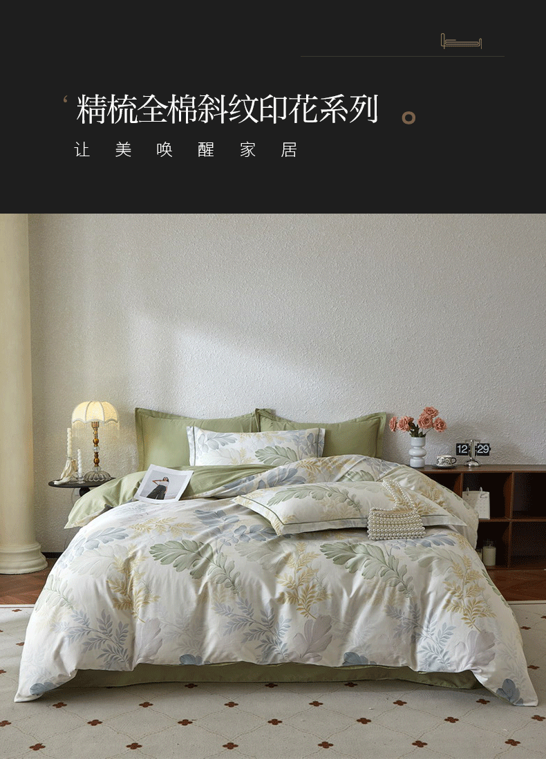 (总)沐白家居 2026新款亲肤舒适全棉印花四件套,爱尔兰-浅灰,爱意浓(紫),波西斯,楚容-米,春风有信(绿),春颜-绿,格丽,花染-卡其,简单生活,莱卡-咖,罗马假日,蘑菇屋-紫,暮光-蓝,诺溪,倾妍(灰),时薇(紫),香野-粉,邂逅(绿),星荷(桔),叶时光-桔,月涟,自由式-咖