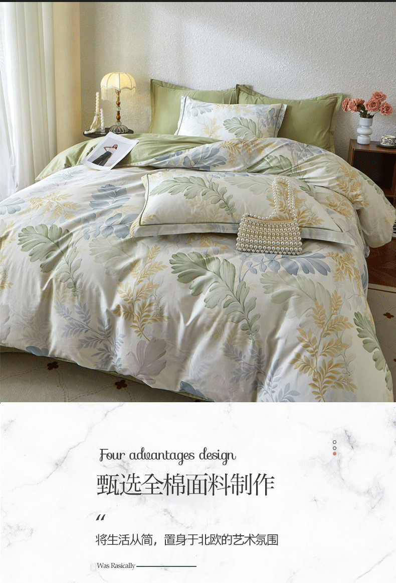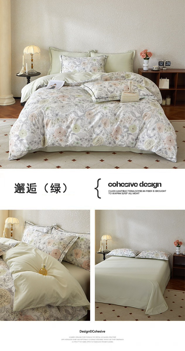 沐白家居 2026新款亲肤舒适全棉印花四件套 春风有信(绿)