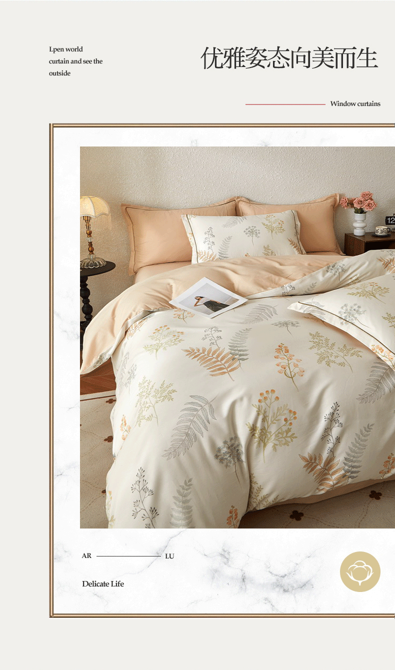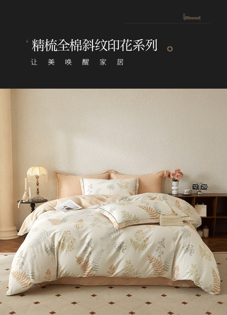 (总)沐白家居 2026新款亲肤舒适全棉印花四件套,爱尔兰-浅灰,爱意浓(紫),波西斯,楚容-米,春风有信(绿),春颜-绿,格丽,花染-卡其,简单生活,莱卡-咖,罗马假日,蘑菇屋-紫,暮光-蓝,诺溪,倾妍(灰),时薇(紫),香野-粉,邂逅(绿),星荷(桔),叶时光-桔,月涟,自由式-咖