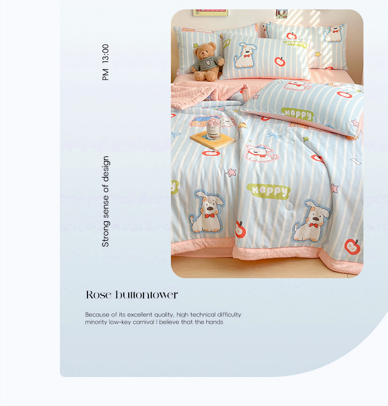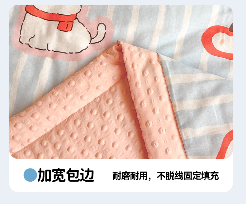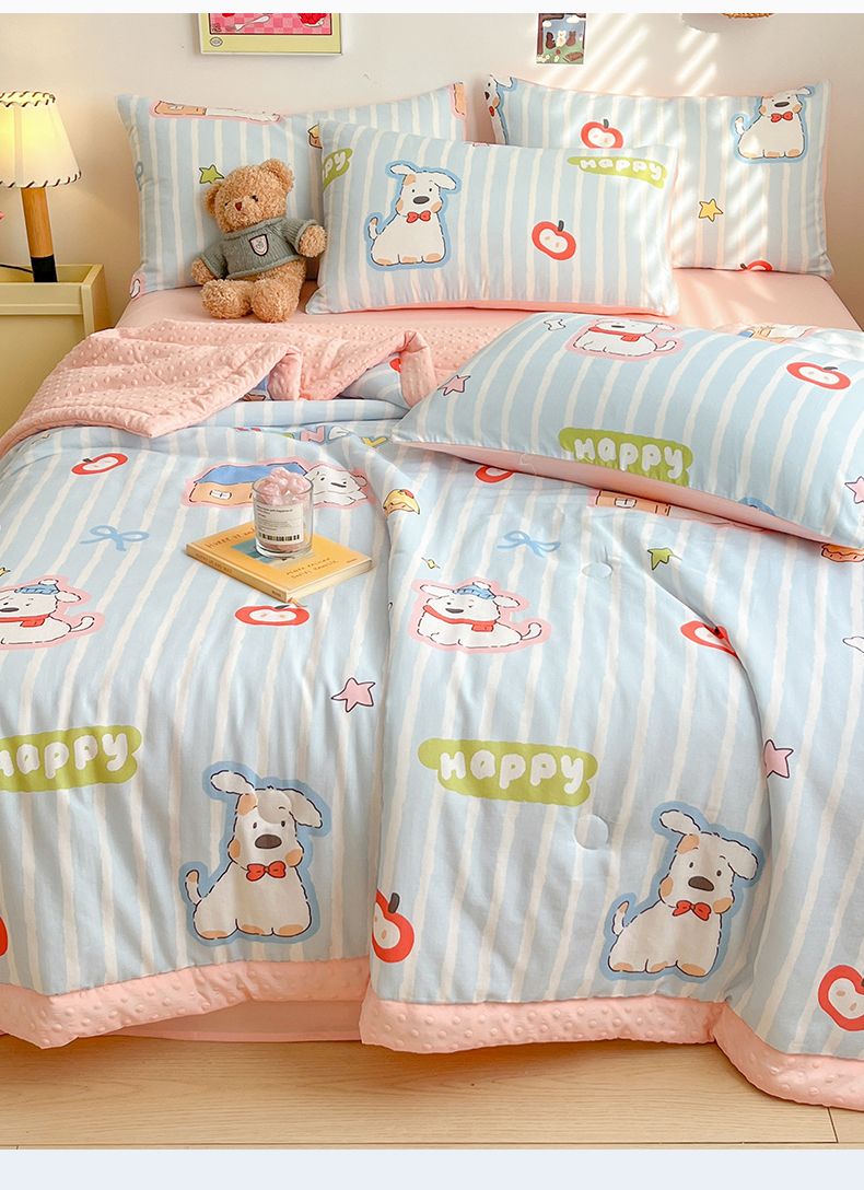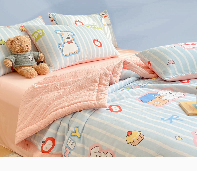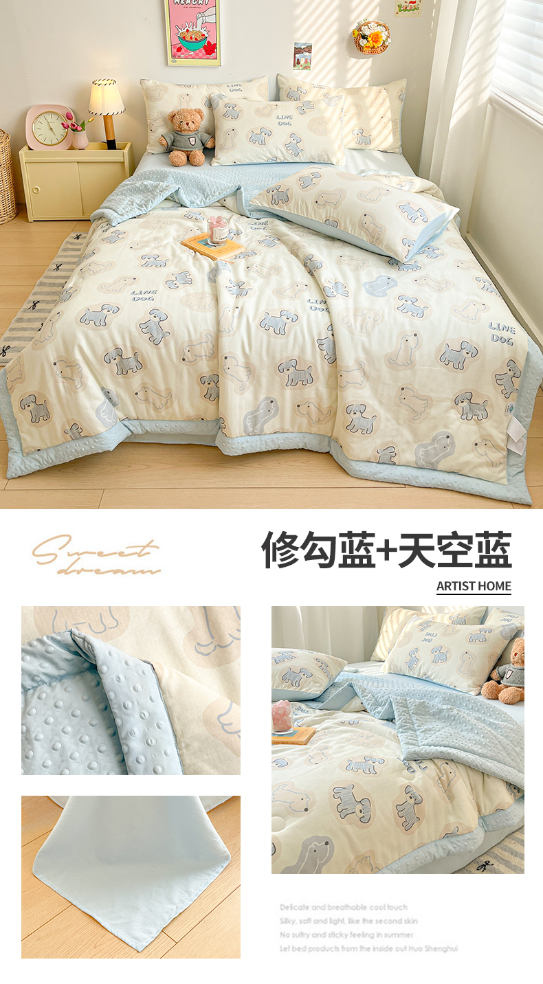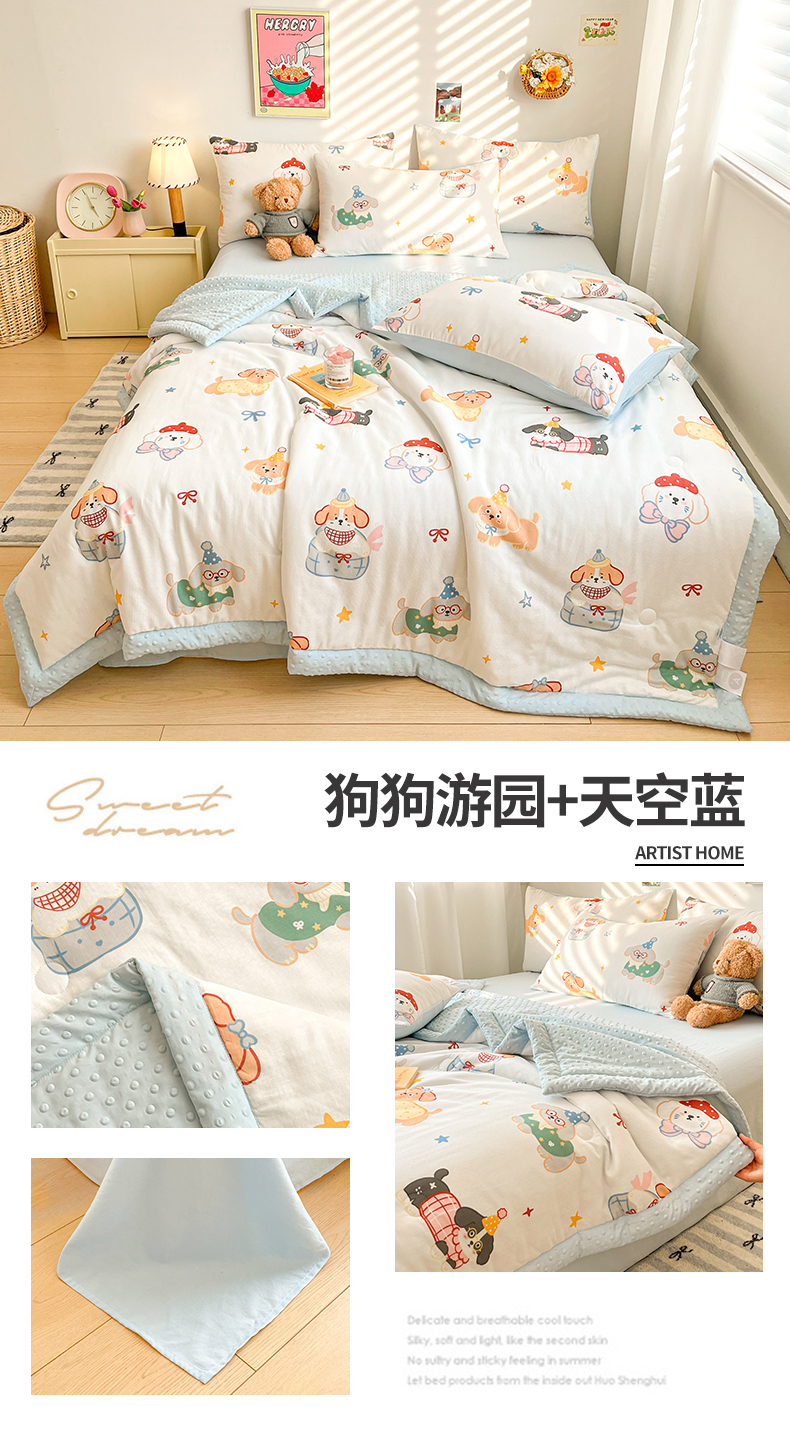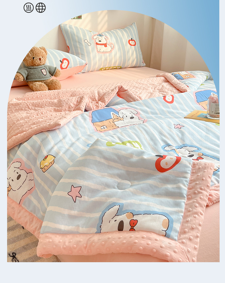 盛秋家纺 2026新款A类水洗棉豆豆夏被系列二 软萌汪汪蓝+奶油粉