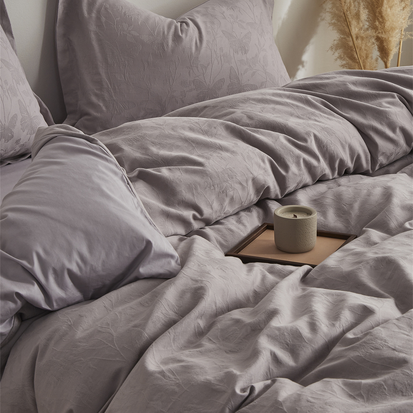 商品名称:顾家家居 2026新款AB面全棉厚织提花四件套 郁蝶-雾紫