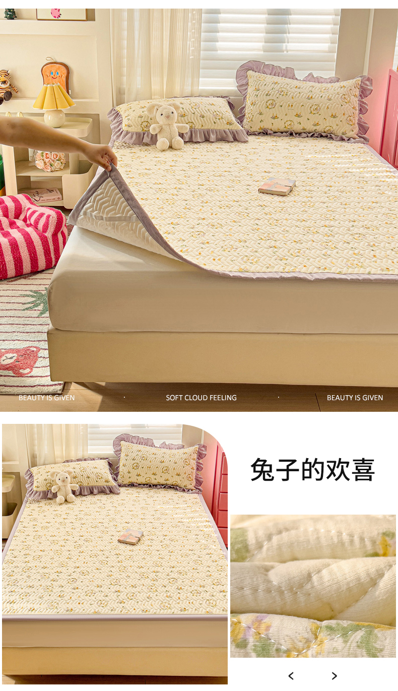 商品名称:纽缦家纺 2026春夏新款云感提花双层纱夹棉床垫 他和她的兔