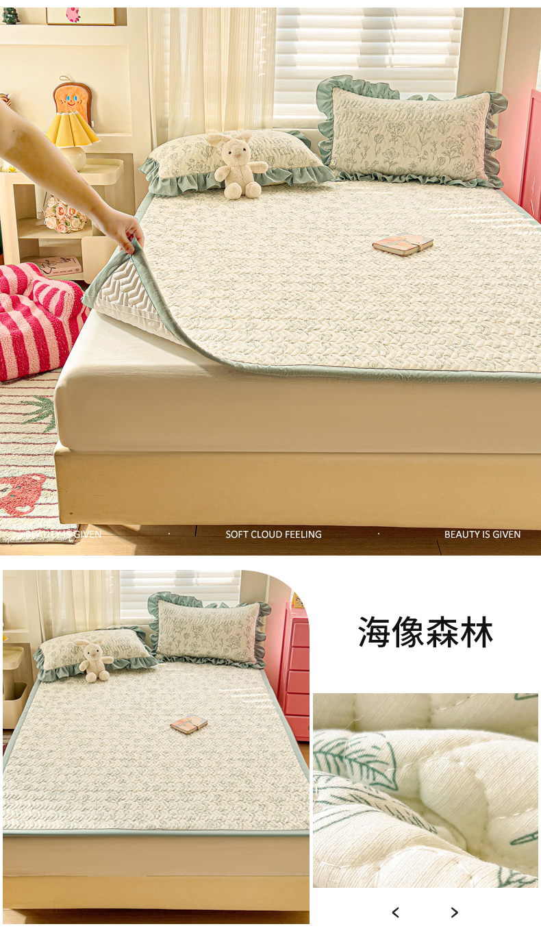 (总)纽缦家纺 2025新款云朵棉加厚夹棉床垫床护垫,薄荷汽水,纯色粉玉,纯色藏青,纯色果绿,纯色卡其,纯色天蓝,纯色芋泥紫,赴约,可可咖茶,觅遇,小粉格,小粉条,小黄条,小蓝格,小蓝条,小绿格,小绿条,组合图仅供展示