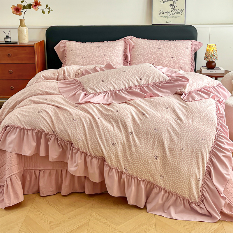 梦可莱家居 2026春夏新品法式复古大花边清新复古卡通系列床盖四件套 恋恋情