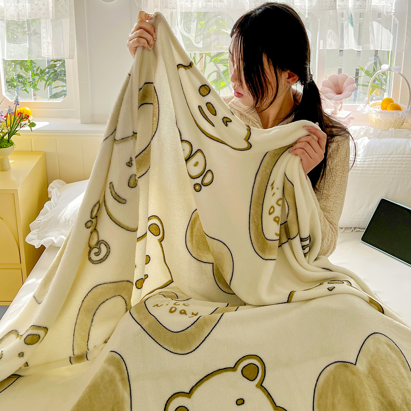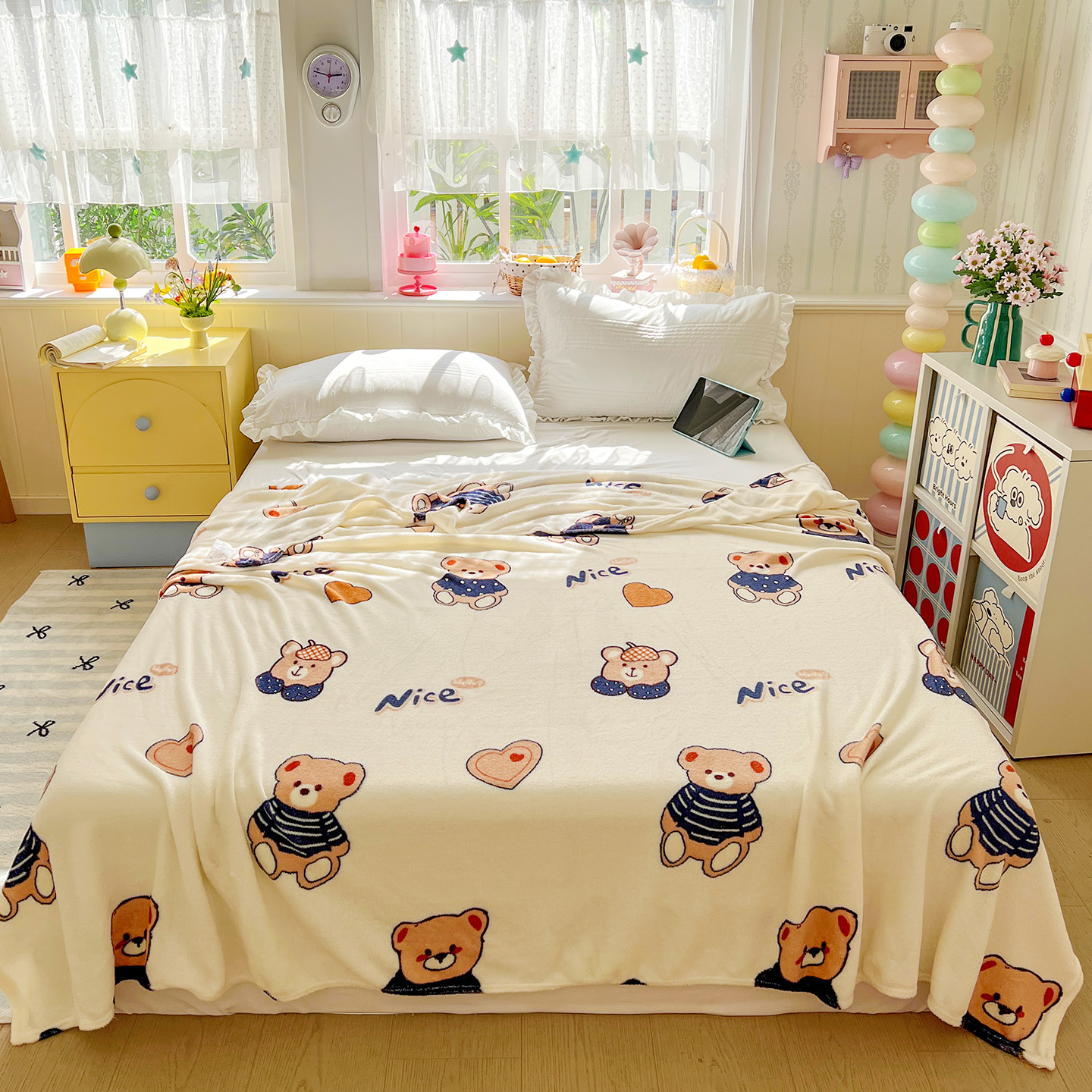 商品名称:悦织湾家纺 2026新款印花法兰绒毛毯牛奶绒盖毯春秋空调毯儿童床单小被子 爱心熊