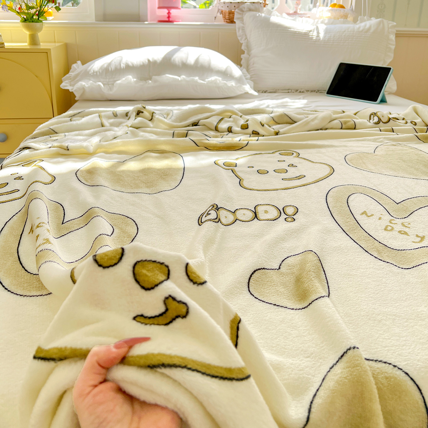 悦织湾家纺 2026新款印花法兰绒毛毯牛奶绒盖毯春秋空调毯儿童床单小被子 爱心熊