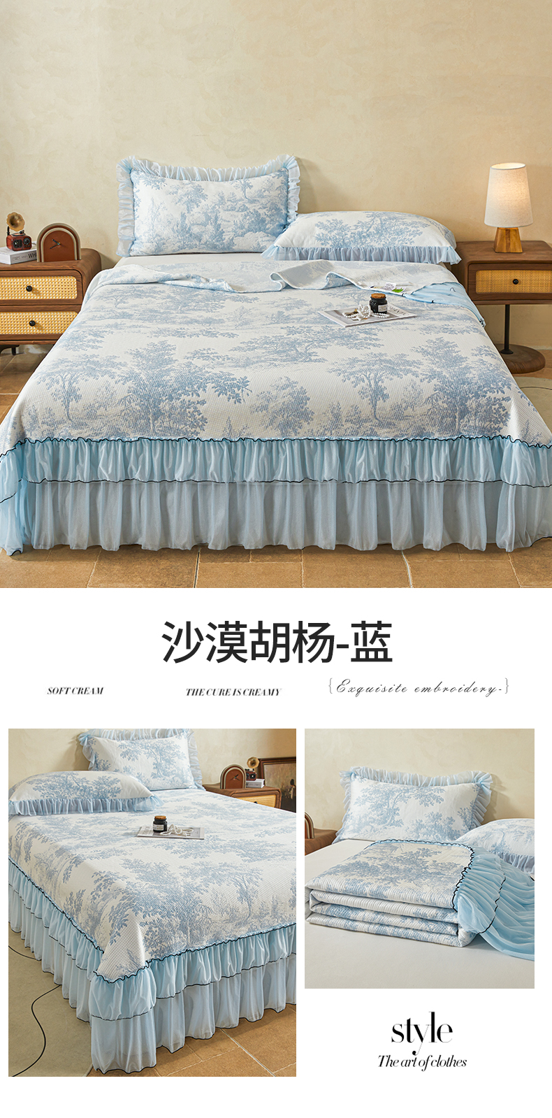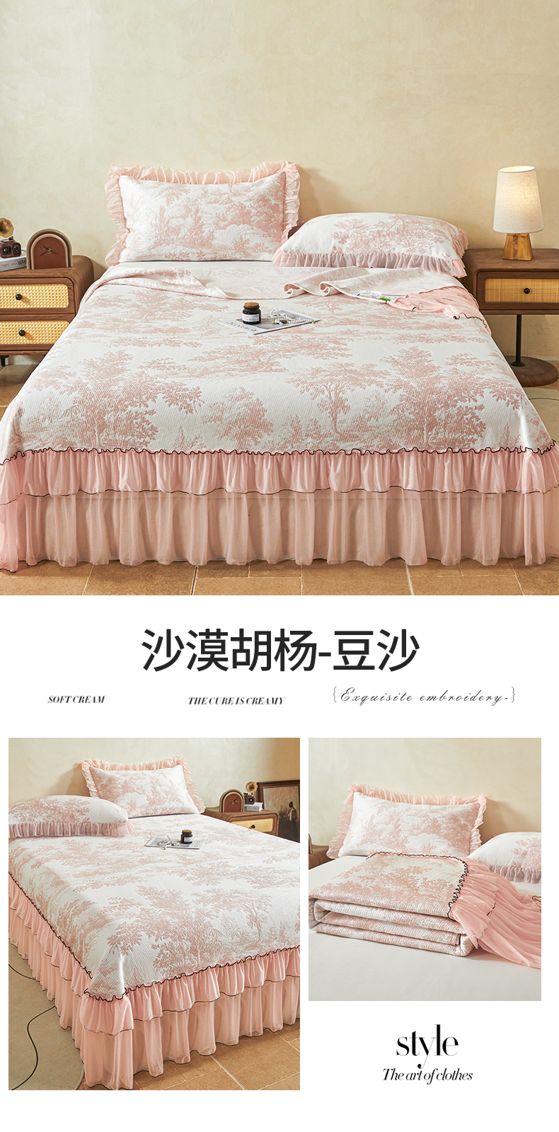 (总)恒爱家纺 2026新款A类凉感冰豆豆床裙席三件套,蝶舞-粉,蝶舞-灰,蝶舞-蓝,蝶舞-绿,风花雪月-粉,风花雪月-灰,风花雪月-蓝
