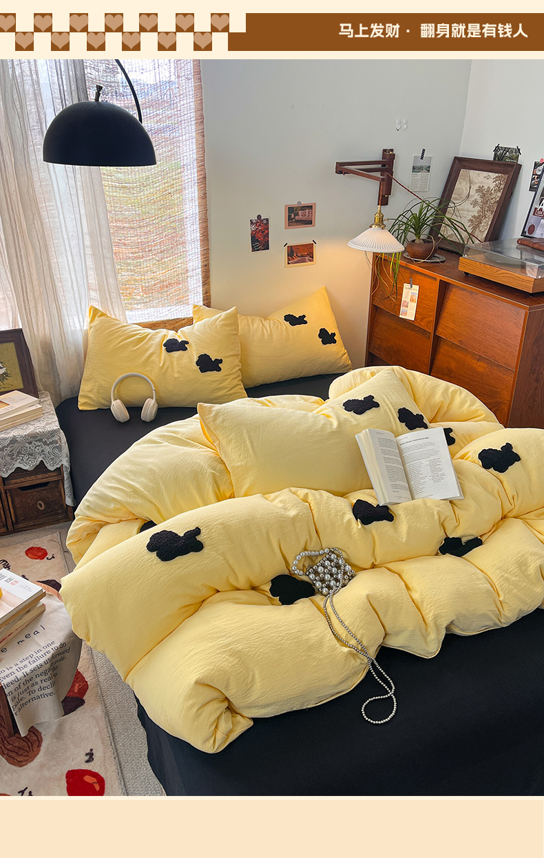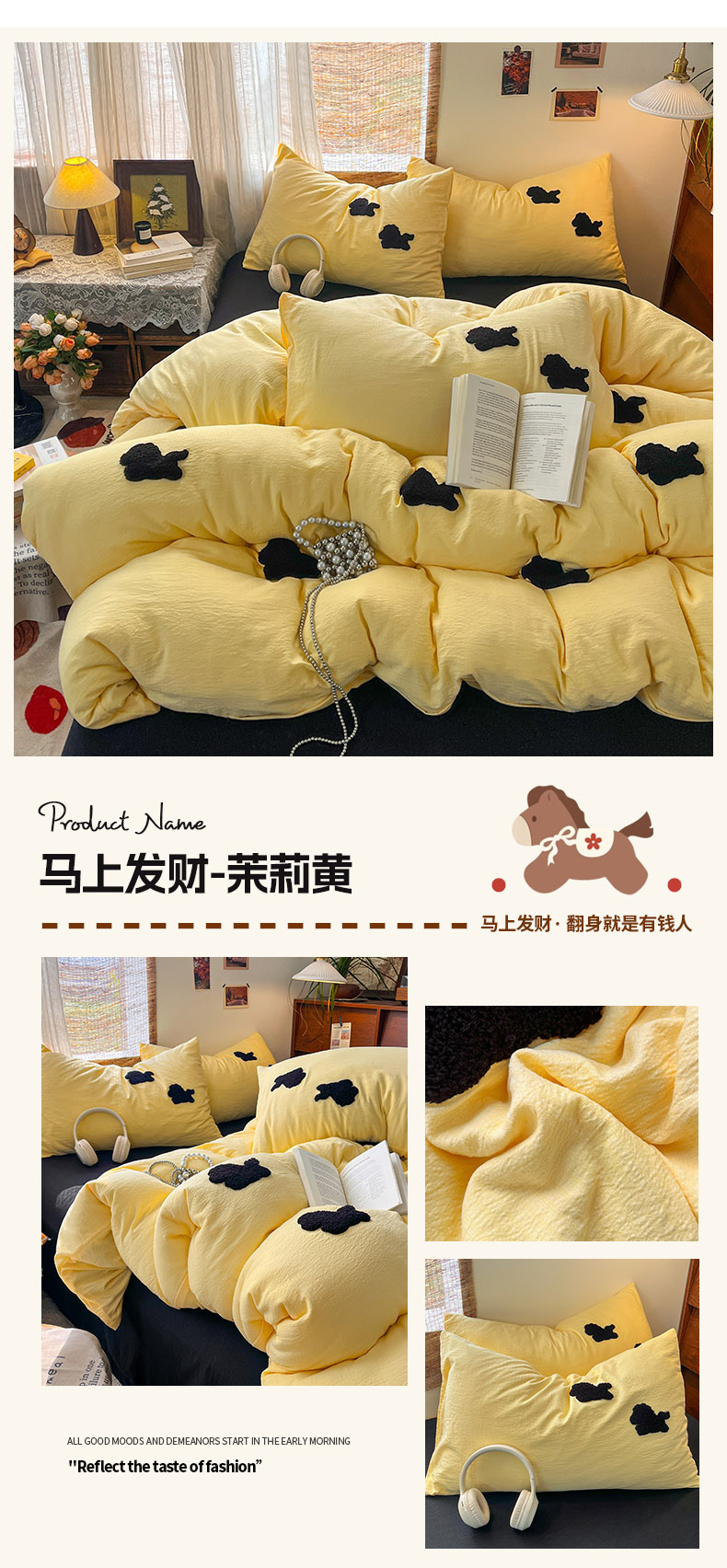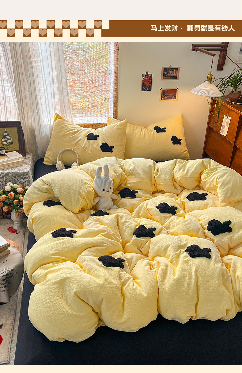 当前位置: 91家纺网 > 商品网购 > 床品套件 > 四件套 > 双层纱四件套 > 花伞家居 2026新款小马毛巾绣双层纱四件套含买家秀 马上发财-茉莉黄