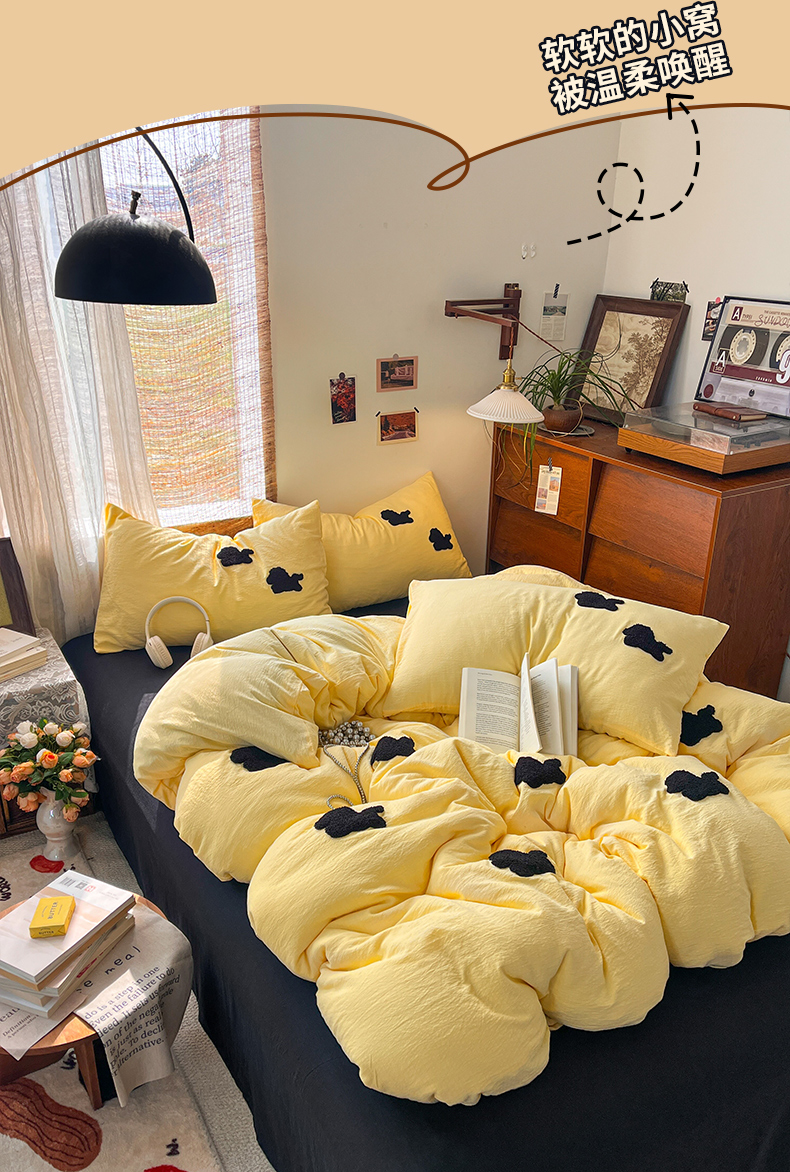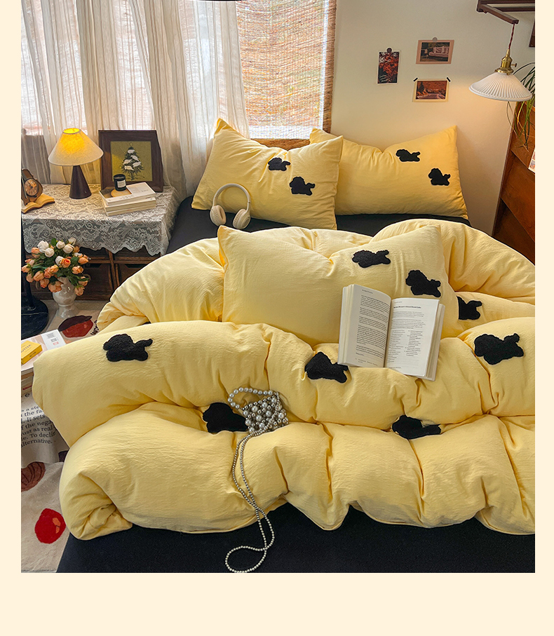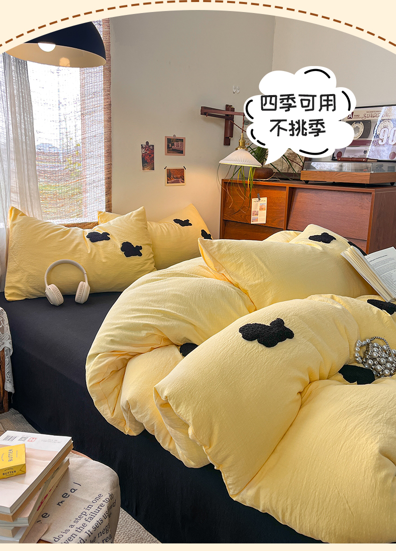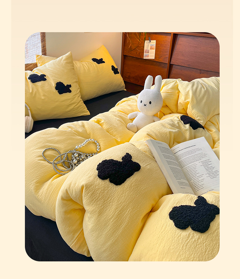 当前位置: 91家纺网 > 商品网购 > 床品套件 > 四件套 > 双层纱四件套 > 花伞家居 2026新款小马毛巾绣双层纱四件套含买家秀 马上发财-茉莉黄