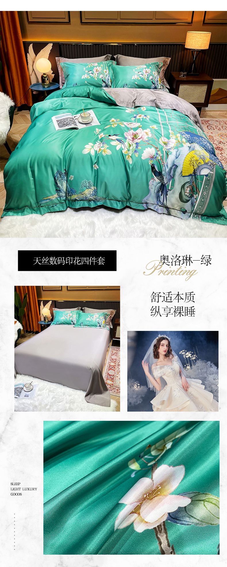 商品名称:梵克保罗 2026新款水洗仿天丝数码凉感丝四件套 柏之林